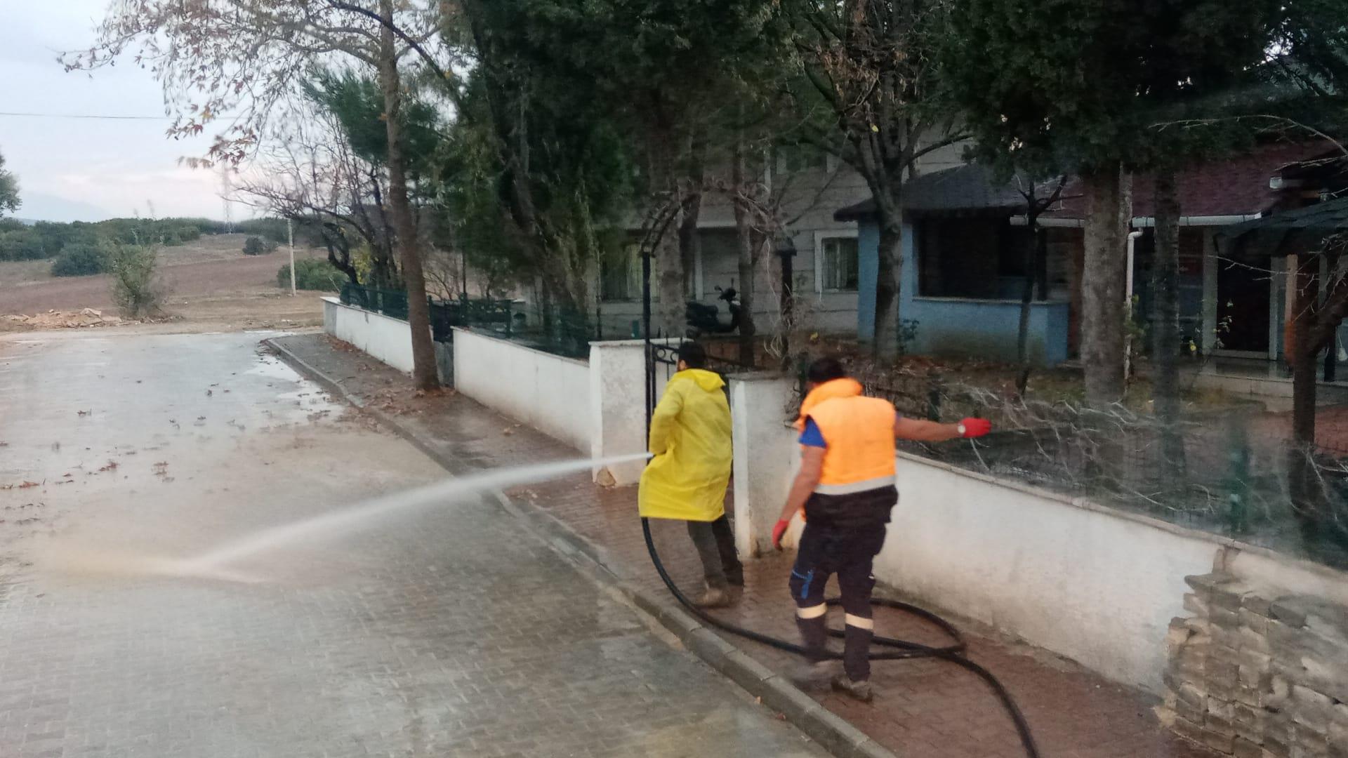 Cami bahçelerindeki dökülmüş yaprak ve atıkları toplayan ekipler daha sonra tazyikli suyla yıkama çalışmasını tamamlıyor.