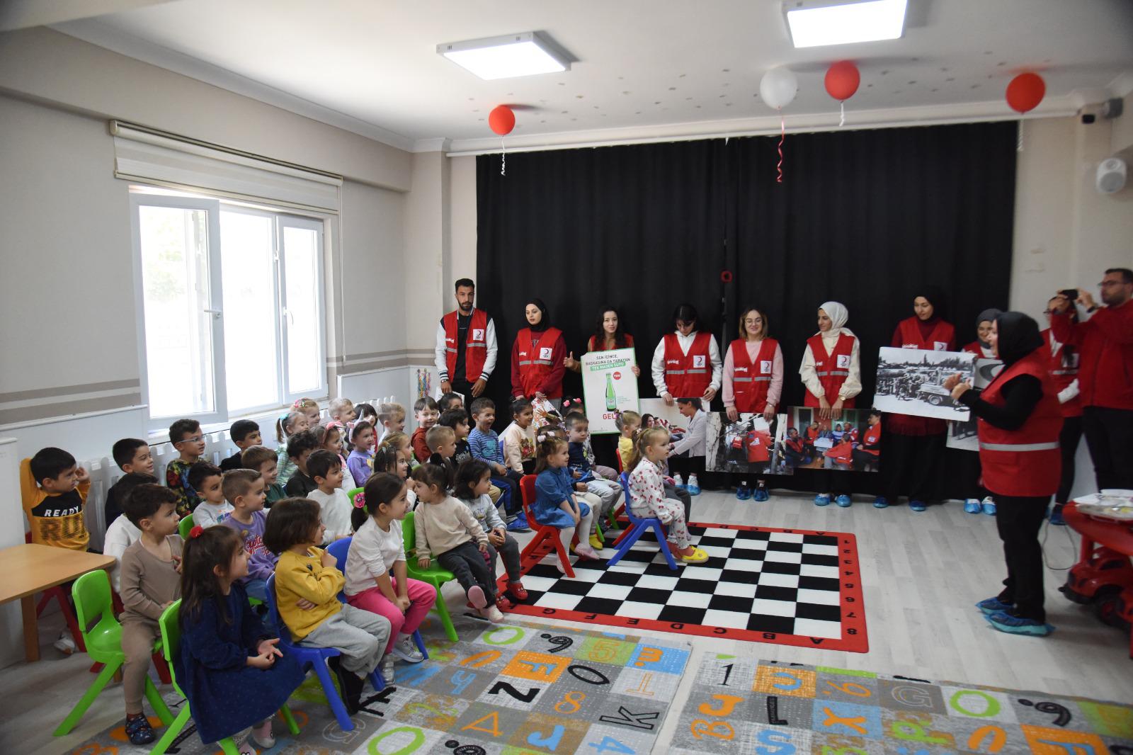Türk Kızılay’ı Haftası dolayısıyla Çocuk Sosyal Tesisleri’nde düzenlenen programlarda küçük öğrenciler, Türk Kızılay’ının faaliyetleri hakkında bilgiler aldı, merak ettikleri soruların cevabını buldu.
