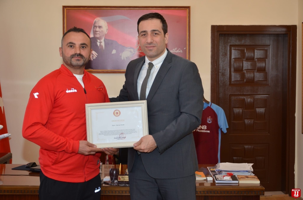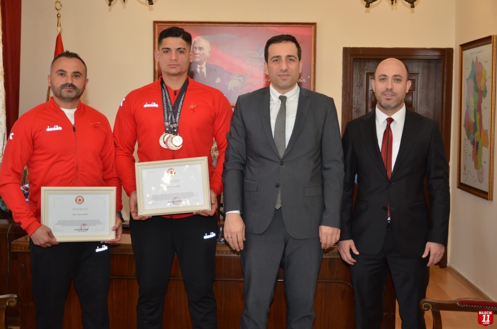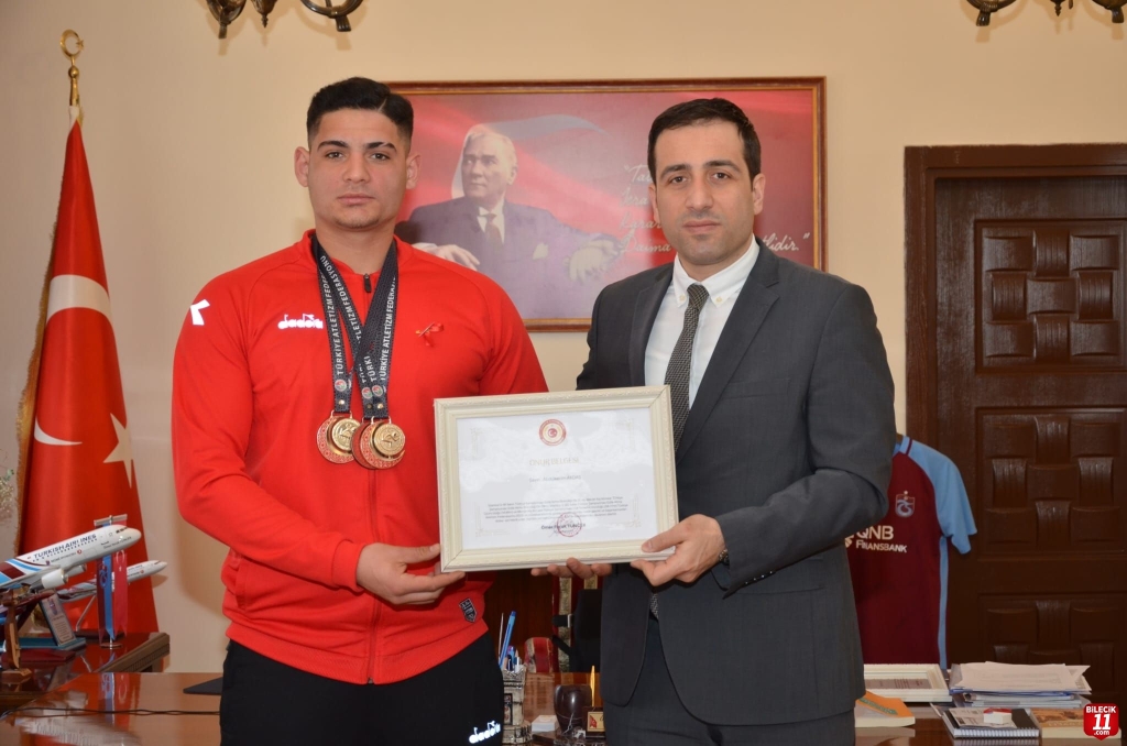 Gülle Atma Branşında Türkiye Şampiyonu olan Abdulkerim Akdaş, Söğüt Kaymakam Ömer Faruk Tuncer’i makamında ziyaret etti.