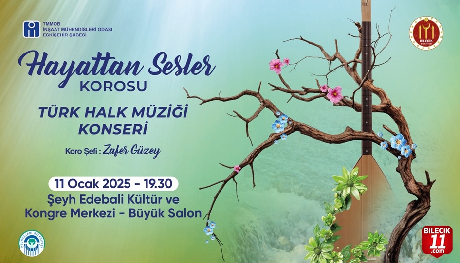 Bilecik Belediyesi, Eskişehir Odunpazarı Belediyesi ve TMMOB İnşaat Mühendisleri Odası Eskişehir Şubesi koordinasyonunda “Hayattan Sesler Korosu” Türk Halk Müziği konseri düzenlenecek.