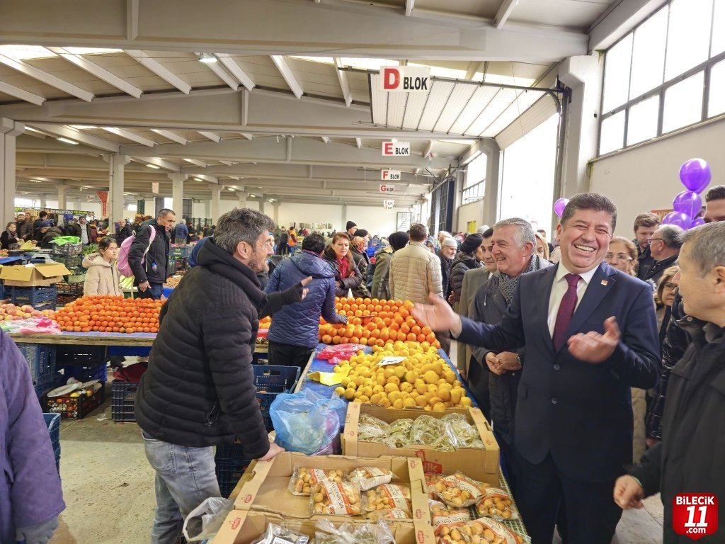 Belediye Meclis üyesi adayları ile birlikte kapalı pazarda esnaf ziyareti gerçekleştiren CHP heyeti, vatandaşlarla sohbet ederek sorunlarını dinledi.