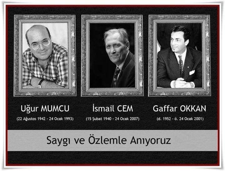 Uğur Mumcu’yu, Gaffar Okkan’ı ve İsmail Cem’i kaybettiğimiz gündür.
