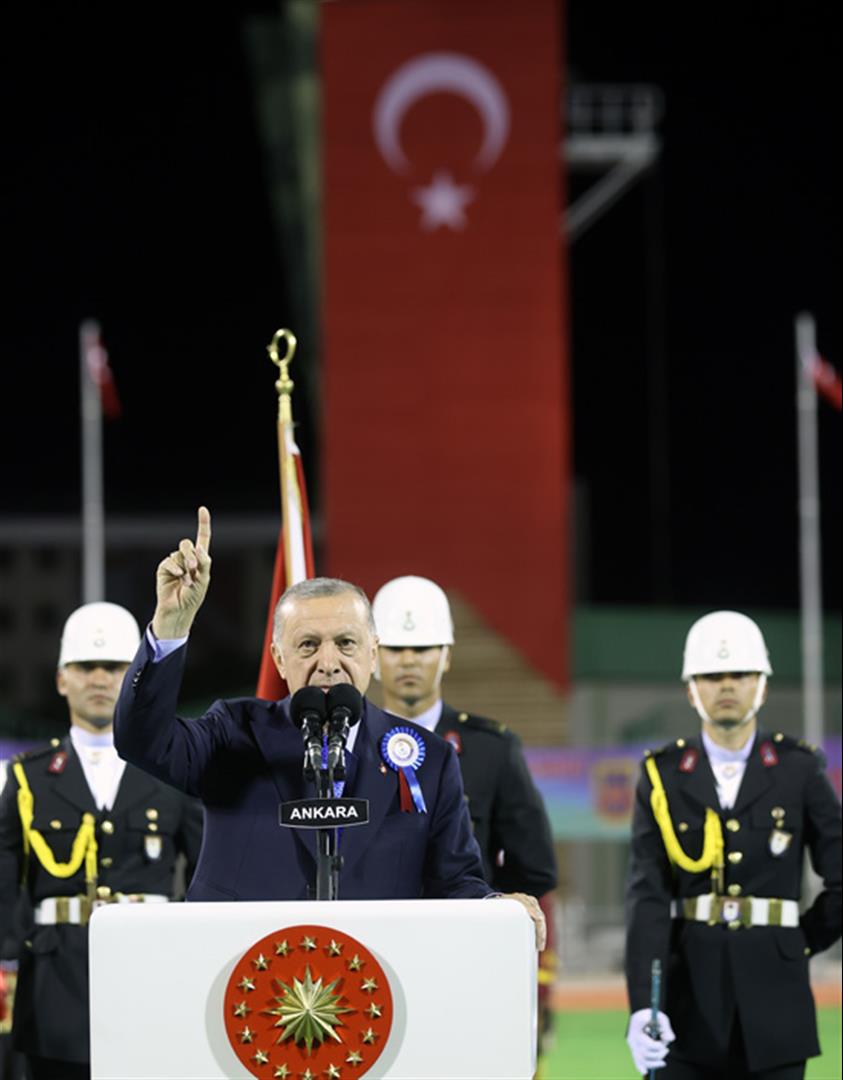 Akademiden başarıyla mezun olan öğrencileri tebrik eden Cumhurbaşkanı Erdoğan, “Bugün 763’ü subay, 2 bin 937’si astsubay olmak üzere toplam 3 bin 700 evladımızı görev yerlerine uğurlamanın heyecanını yaşıyoruz. Bu mezunlarımız arasında kendi öğrencilerimizin yanı sıra dost ve kardeş ülkelerden gençlerimiz de bulunuyor. Her biri milletimizin gönül elçisi olan misafir öğrencilerimizi de kutluyor, kendilerine ülkelerinde üstlenecekleri görevlerde başarılar diliyorum” dedi.