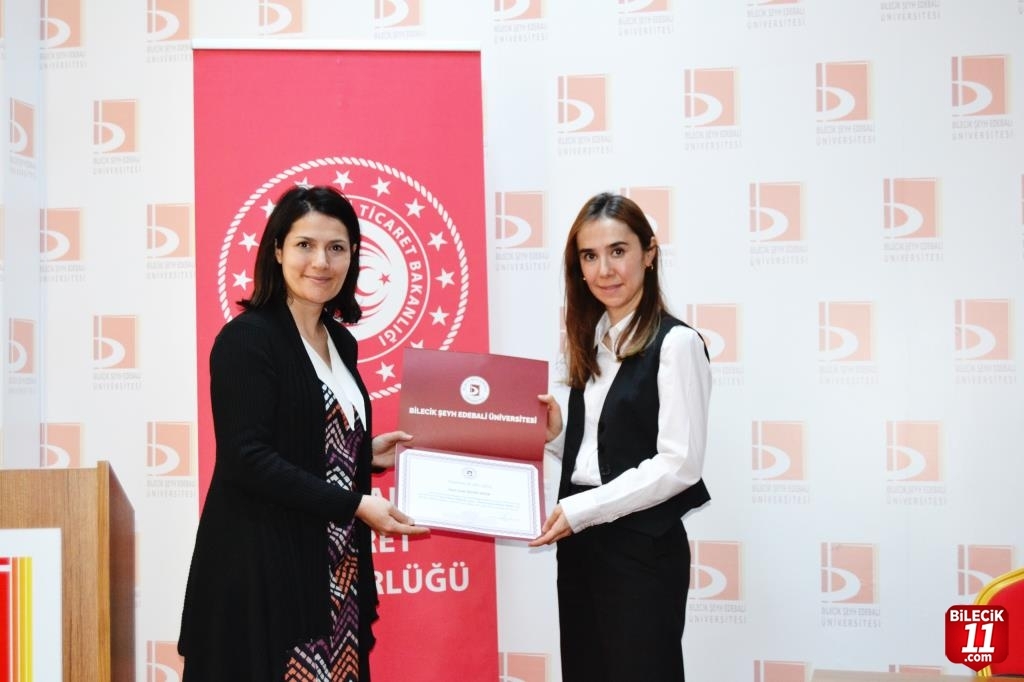 Katılımcılar, Bilecik 2024 Tüketici İl Hakem Heyeti verileri hakkında bilgilendirildi ve tüketici haklarını nasıl koruyabilecekleri konusunda önemli bilgiler edindi. Etkinlik, soru-cevap bölümünün ardından, Kariyer Merkezi Koordinatör Yardımcısı Dr. Öğr. Üyesi Hacer Taşkıran Tepe tarafından katılımcılara teşekkür belgesi takdim edilmesiyle sona erdi.