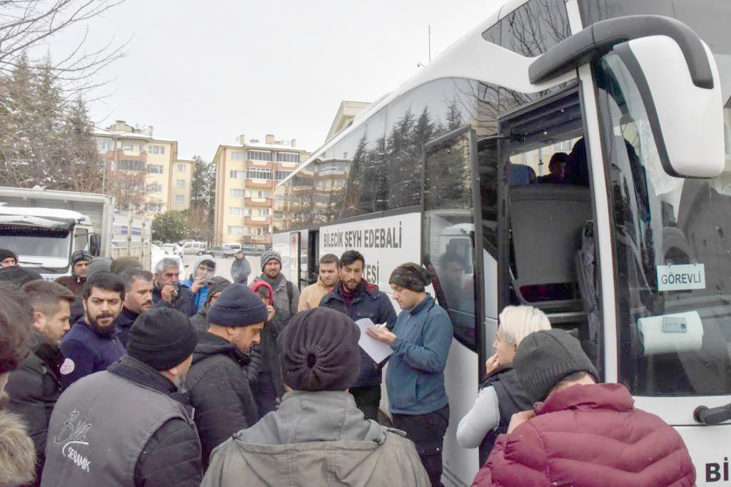 Deprem bölgesinde arama, kurtarma ve yardım çalışmalarına katılmak üzere aralarında Şeyh Edebali Üniversitesi öğrencileri, akademik ve idari personelin de bulunduğu 99 AFAD gönüllüsünü taşıyan 3 otobüslük konvoy ilimizden hareket etti.