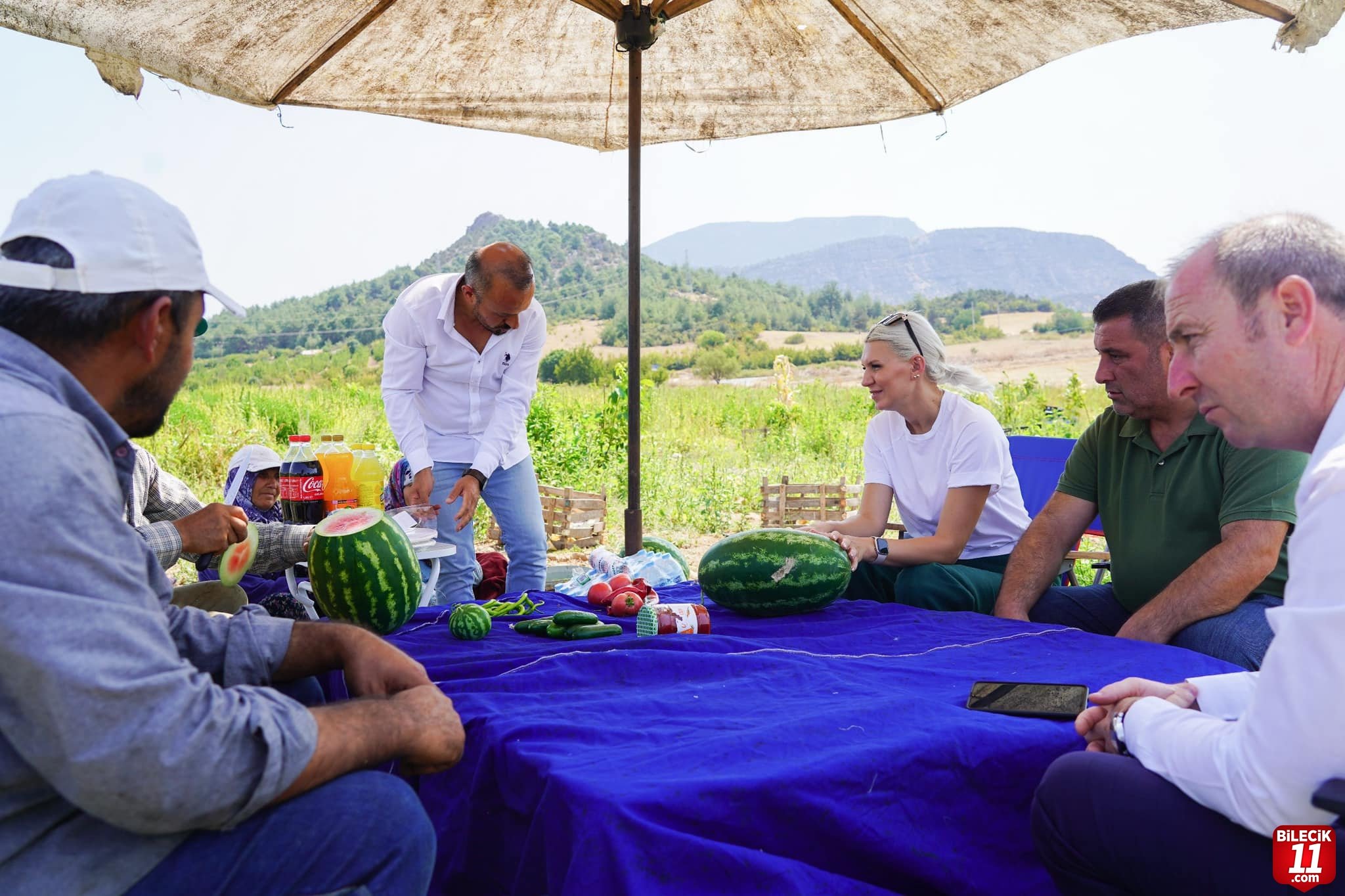 Bilecik Belediye Başkanvekili Melek Mızrak Subaşı yanındaki heyet ile birlikte Deresakarı Köyü’nde üretim yapan çiftçi kadınlar ile bir araya geldi.