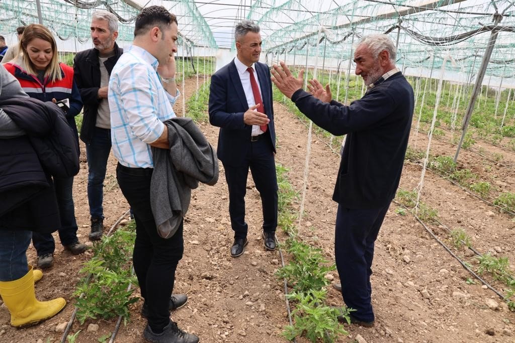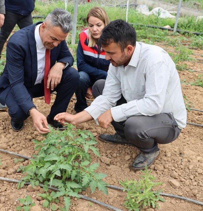 Daha sonra örtü altı üretim yapan çiftçileri ziyaret ederek yetiştiriciliği yapılan ürünlerde hastalık ve zararlı kontrolleri yapıldı. Üreticiler ile birebir görüşülerek, yaşadıkları sorunların çözümlenmesi için gerekli iş ve işlemler için çalışma başlatıldı.