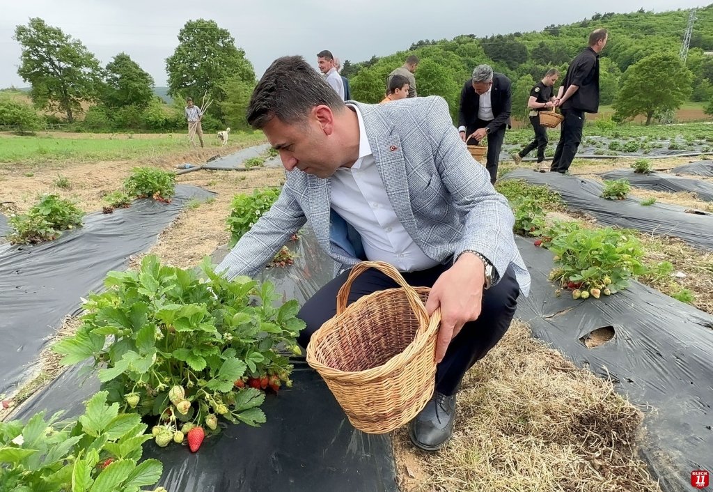 Merkez Cumalı, İlyasça, Sarmaşık ve Ulupınar köylerinde düzenlenen programlara katılan Vali Aygöl, Ulupınar köyünde Çilek tarlasına giderek dalından Çilek topladı.