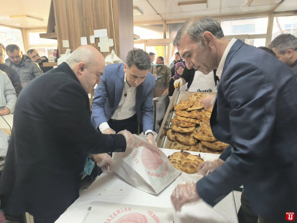Bilecik Valisi Şefik Aygöl, Bilecik İl Emniyet Müdürü Hakan Yılmaz, Bilecik TSO Yönetim Kurulu Başkanı Mehmet Ergün, Başkan Yardımcıları Yüksel Gökçedağ ve Ercan Öztürk, Ramazan’ın ilk iftar pidelerinin dağıtımını Kayıboyu Fırından yaptı.
