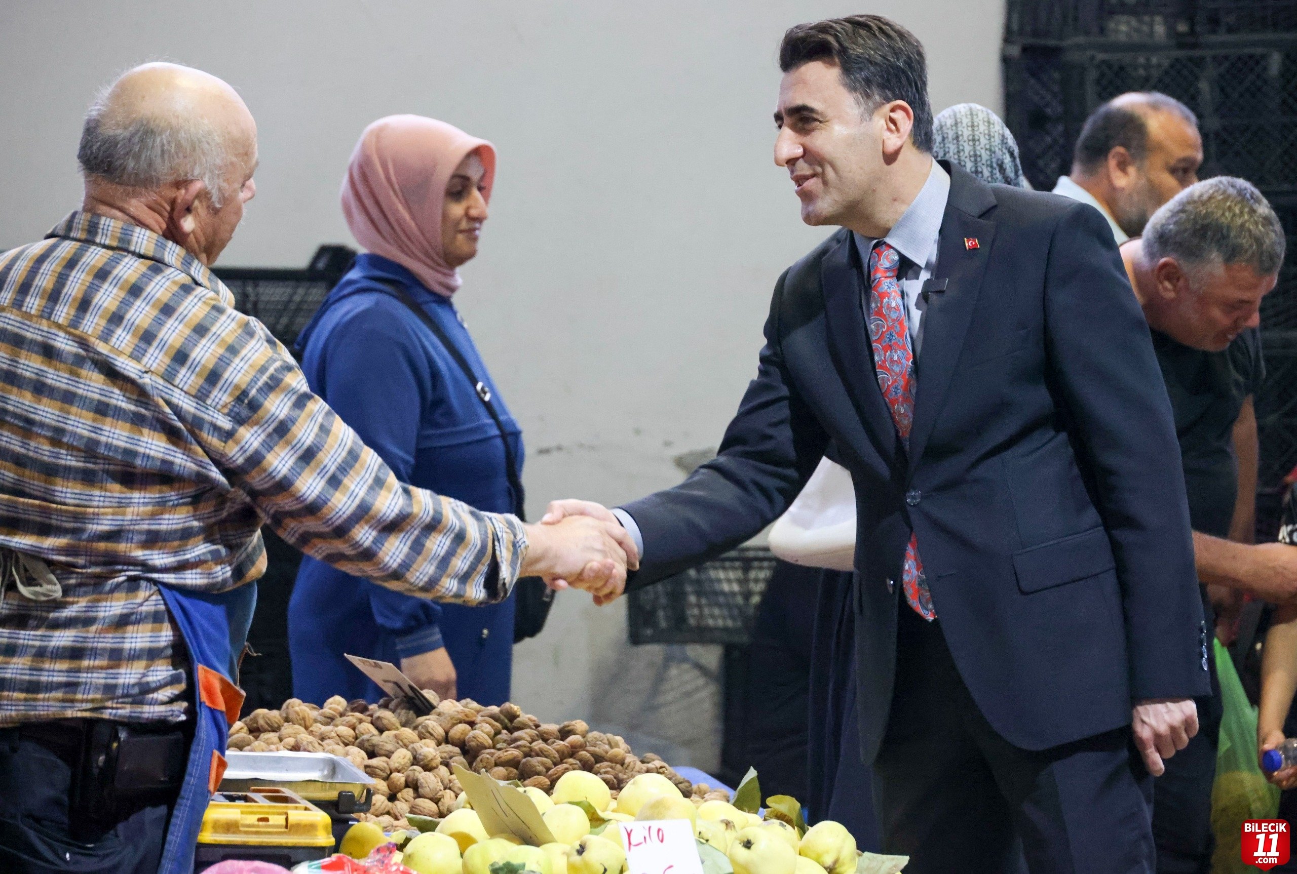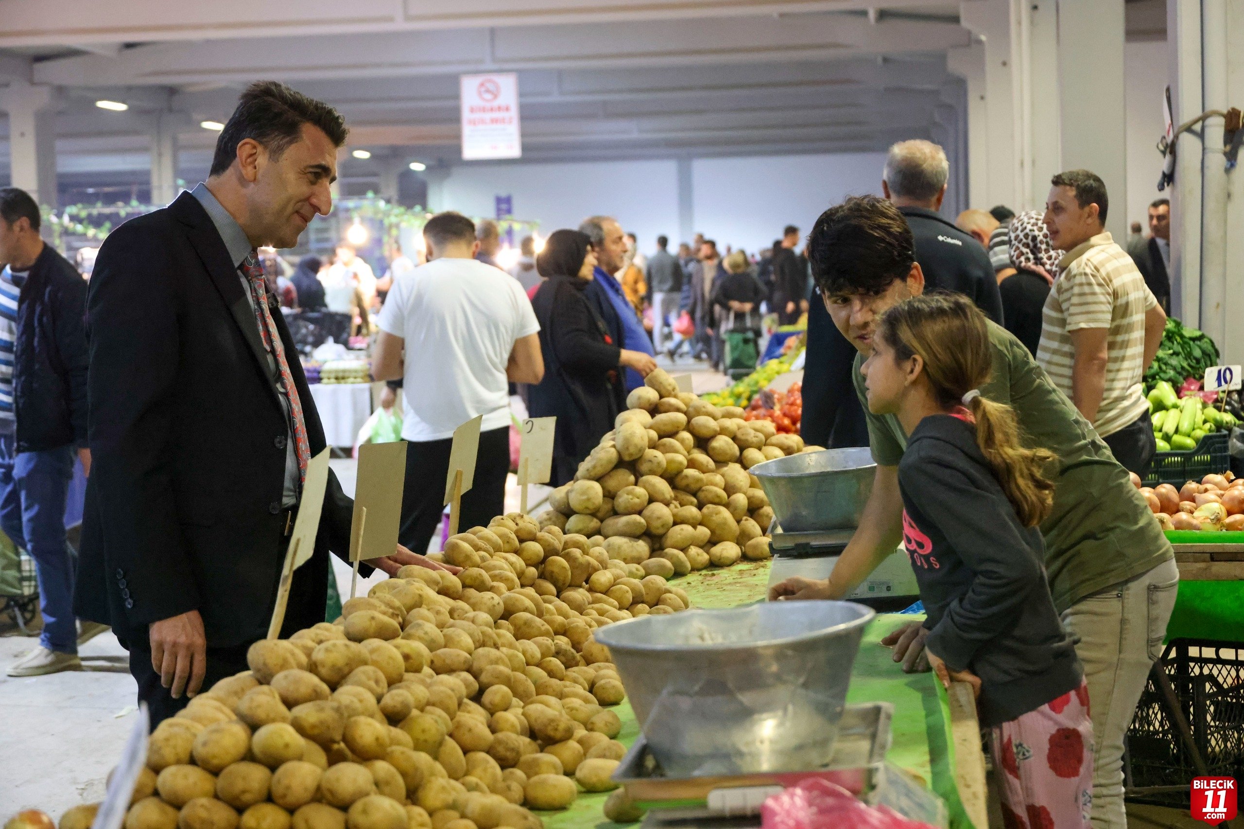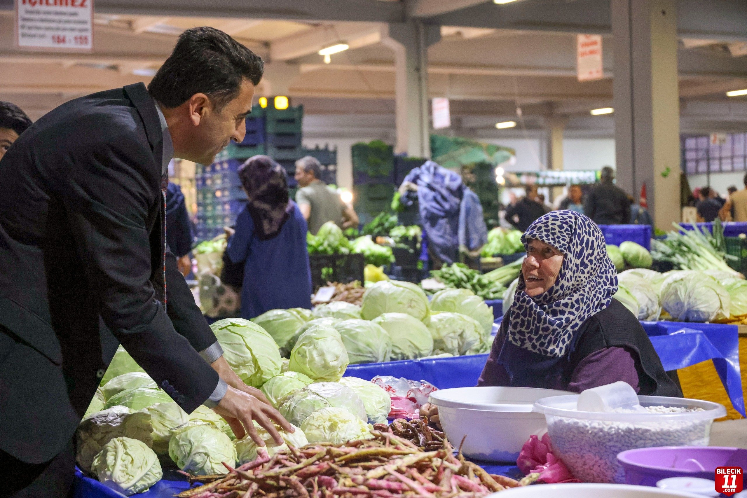 Sebze ve meyve fiyatları, alışveriş hareketliliği ve pazarın durumu hakkında pazarcı esnafı ve alışveriş yapan vatandaşlarla sohbet eden Vali Aygöl, esnafa hayırlı ve bol kazançlar diledi.