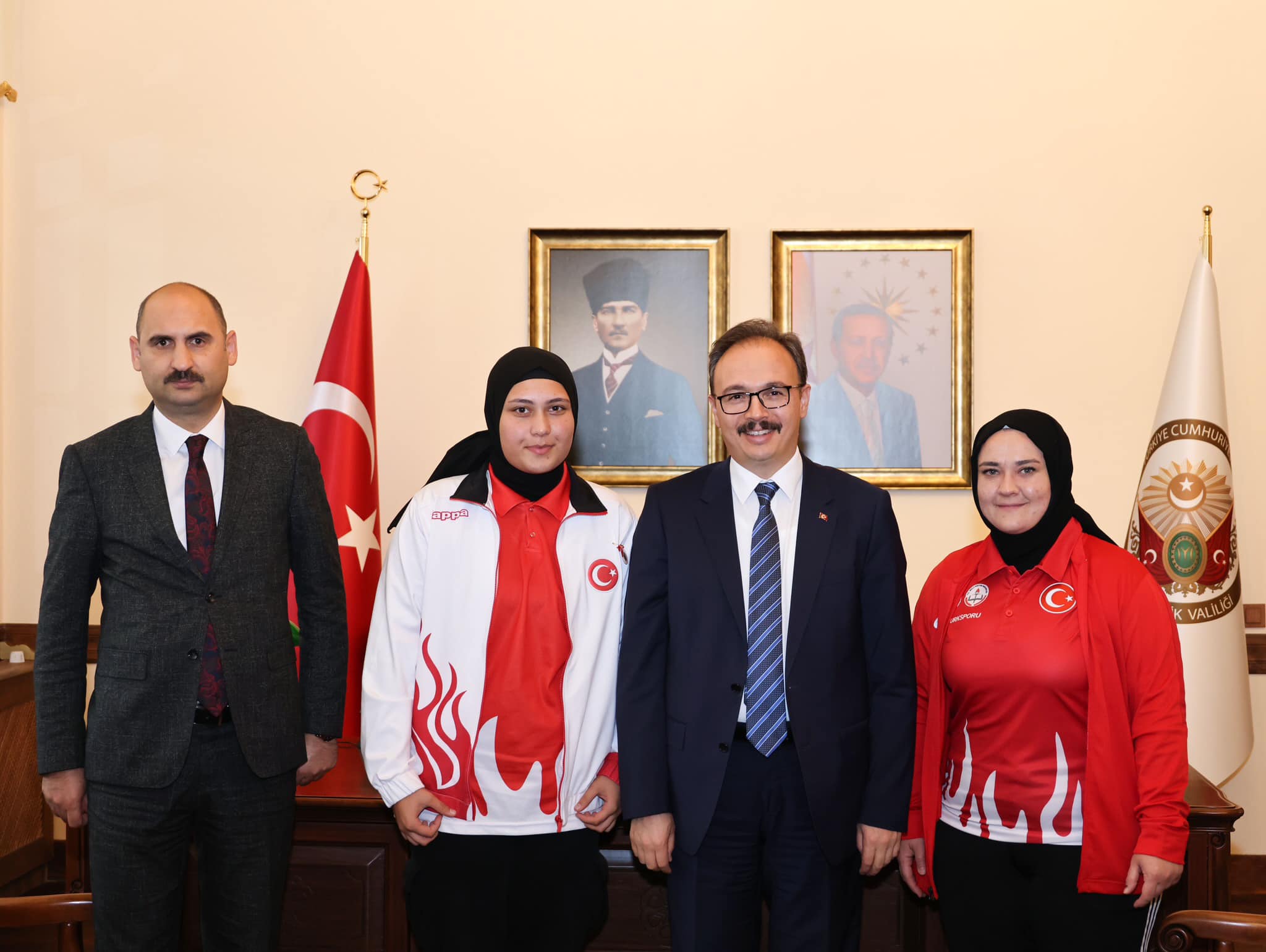 Birli ve Beraberindeki Gençlik ve Spor İl Müdürü Yasin Özdemir’i makamında kabul eden Vali Kızılkaya, sporcuyu tebrik ederek başarılarının devamını diledi ve hediye takdiminde bulundu.