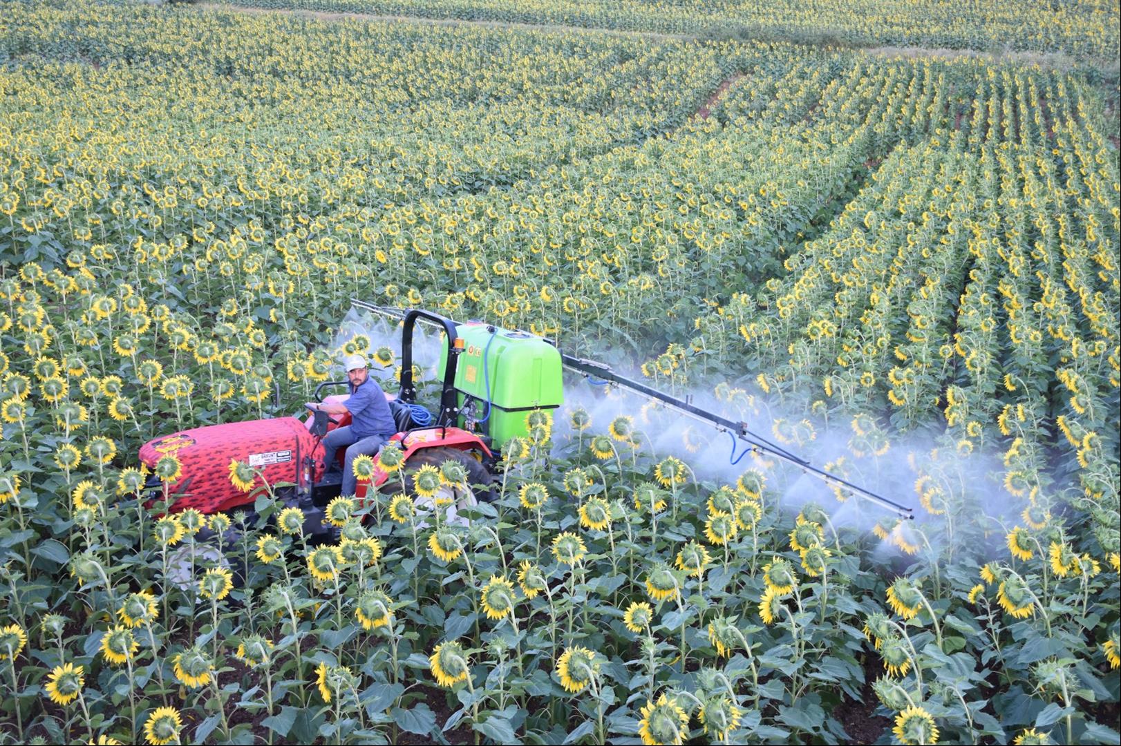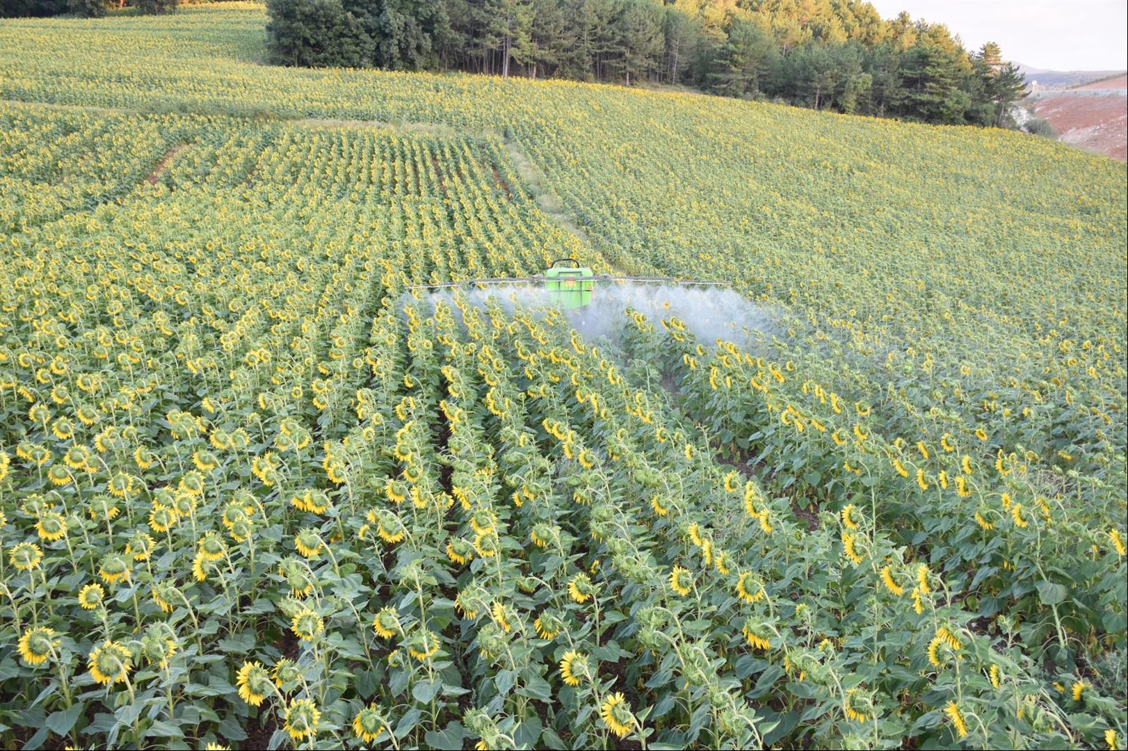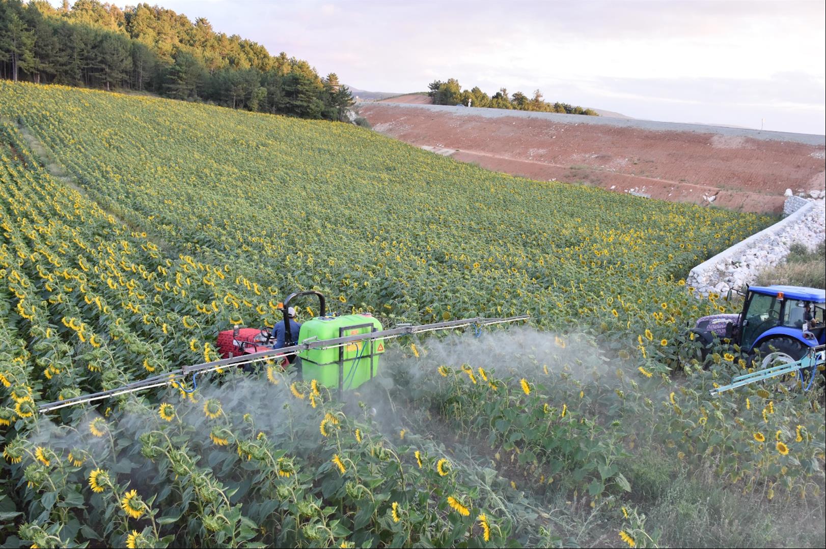 İLK DEFA ARAZÖZLERLE AYÇİÇEK TARLALARINA İLAÇ SIKILDI