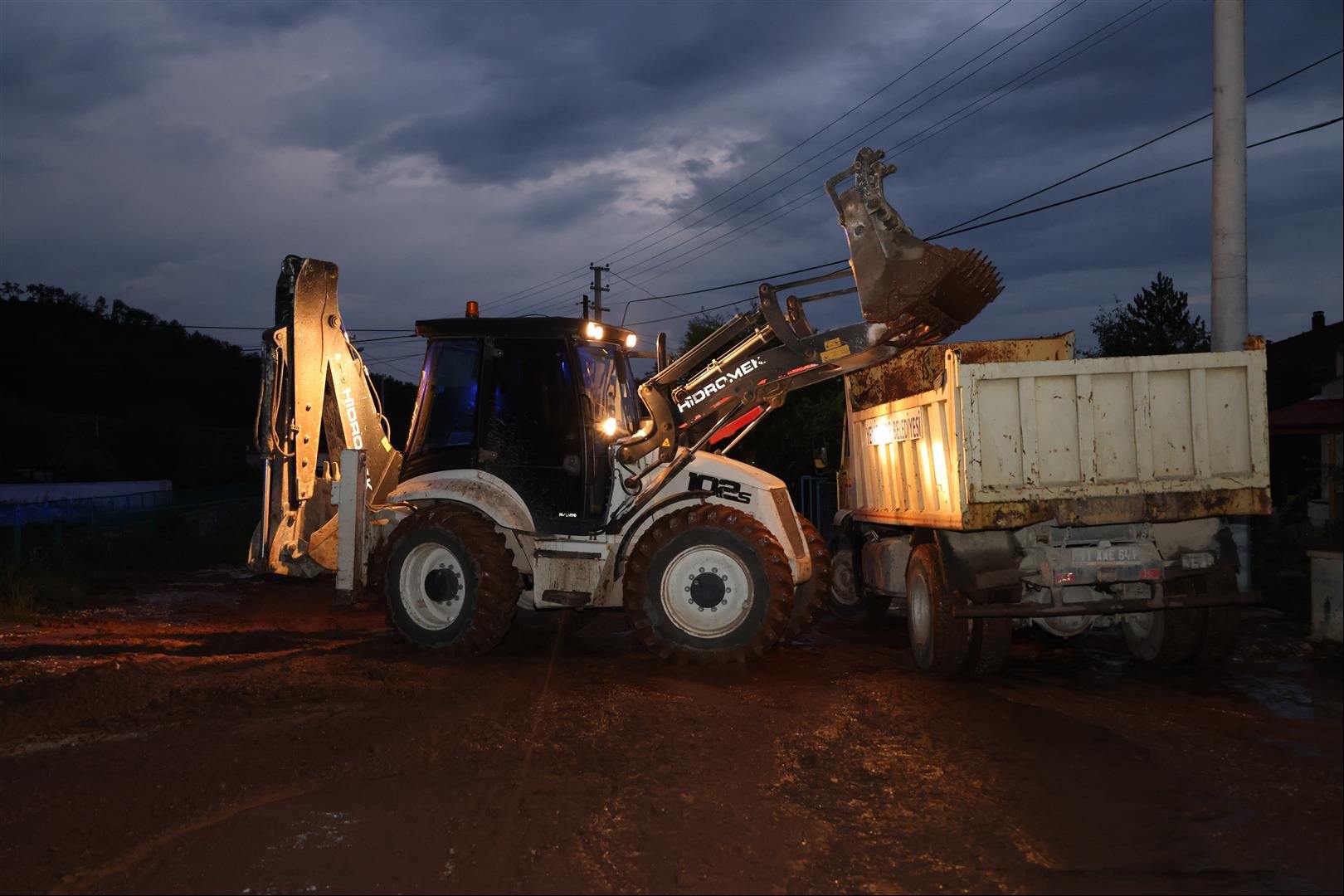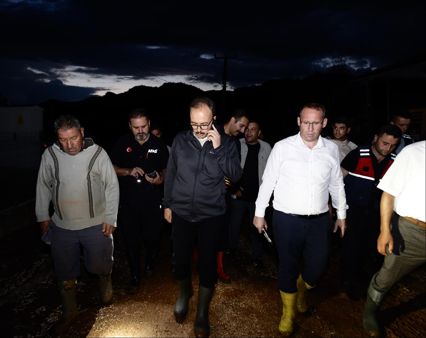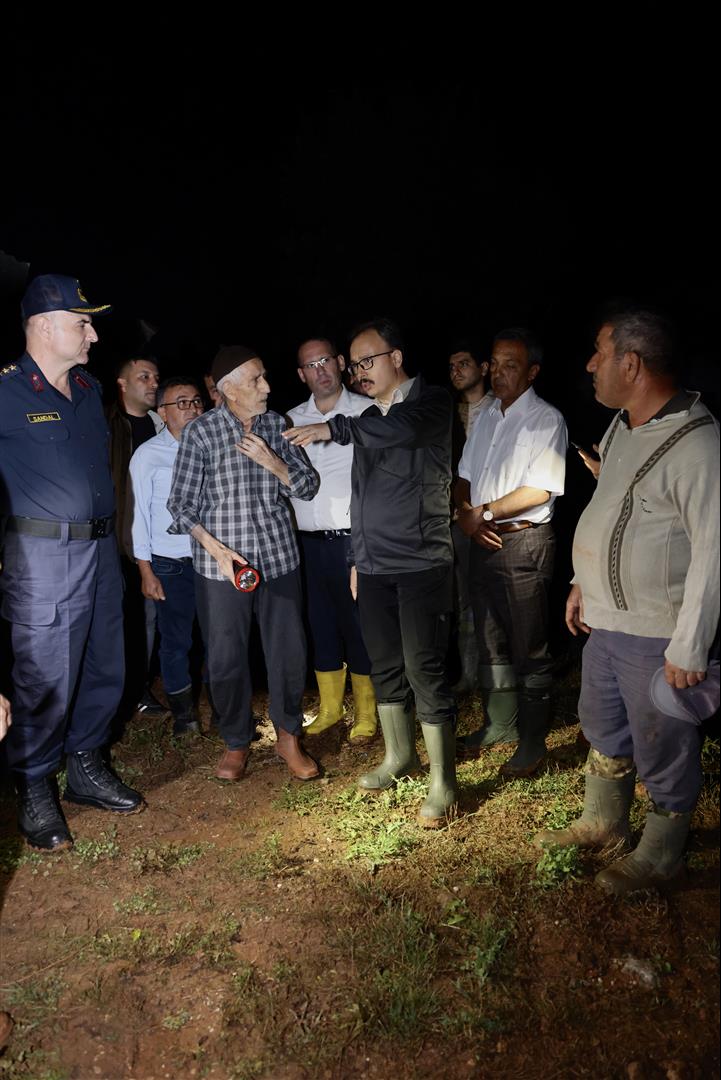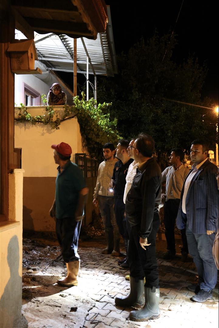 Afetin yaşanmasının hemen ardından olay yerine intikal eden Vali Kızılkaya, selin zarar verdiği bölgede incelemede bulundu.