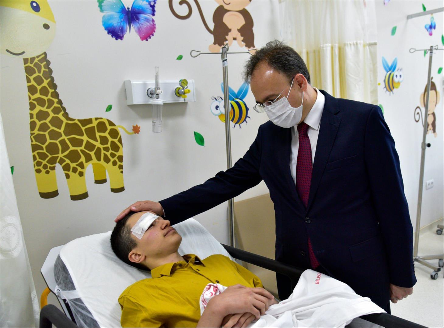 Yaralılara “geçmiş olsun” dileklerini ileten Vali Kızılkaya’ya ziyaretinde, Bozüyük Kaymakamı Adem Öztürk, İl Jandarma Komutanı Kıdemli Albay Muzaffer Sandal ve İl Sağlık Müdürü Ferhat Damkacı da eşlik etti.