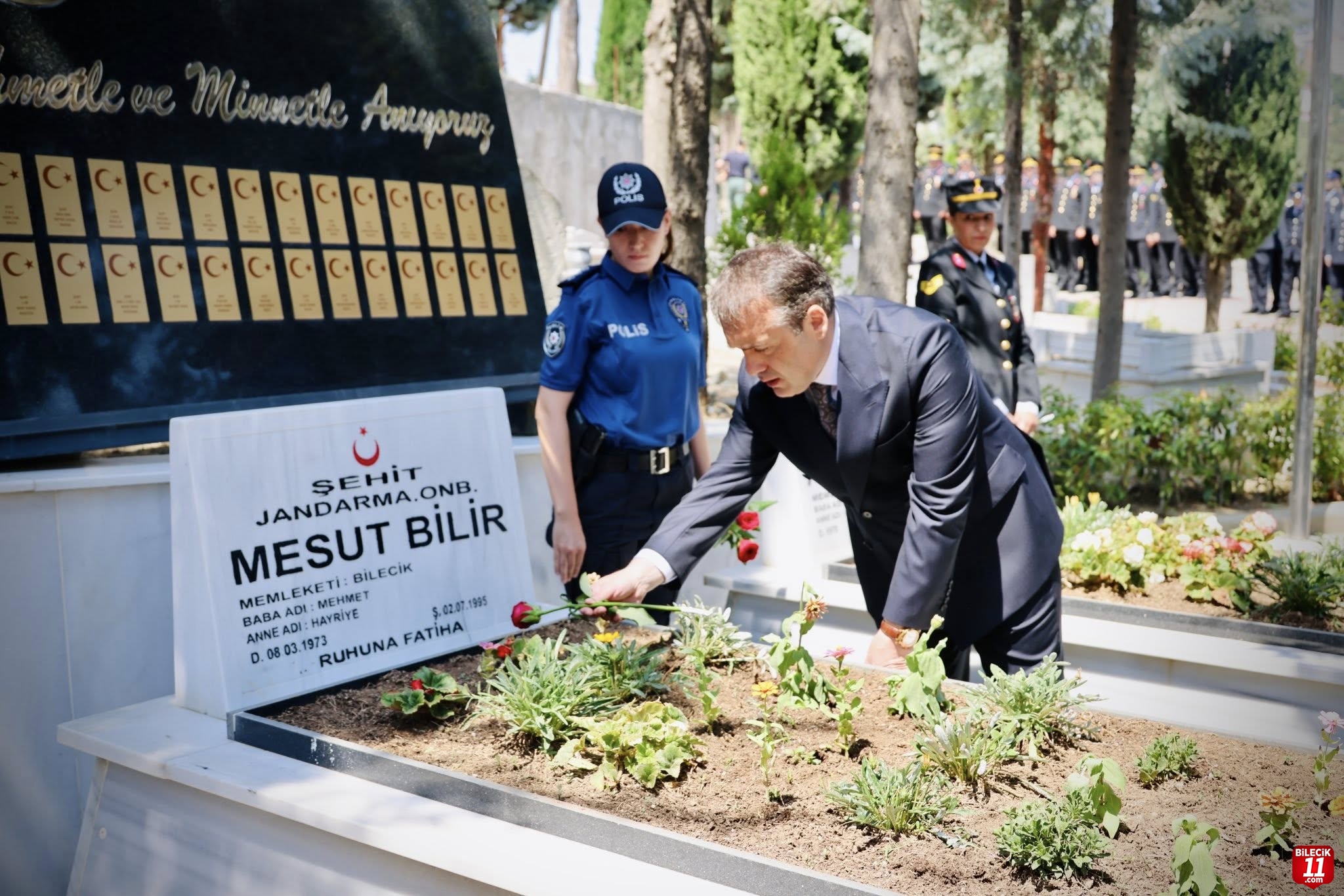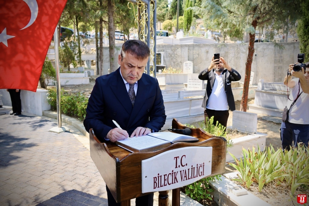 15 Temmuz Demokrasi ve Milli Birlik Günü dolayısıyla Bilecik Şehitliği’nde anma töreni düzenlendi. Bilecik Valisi Faik Oktay Sözer; “15 Temmuz sadece bir direniş değil, aynı zamanda yeniden dirilişin adıdır. Milletin, devletine, bayrağına, demokrasisine sahip çıkmasının efsaneleşmiş adıdır 15 Temmuz. O gece bu ülke sadece bir darbe girişimini değil, tarihin en karanlık senaryolarını da elinin tersiyle itmiştir. 15 Temmuz unutulmayacak, unutturulmayacaktır. O gece yazılan destan nesiller boyunca bu milletin hafızasında yaşayacaktır.” dedi.