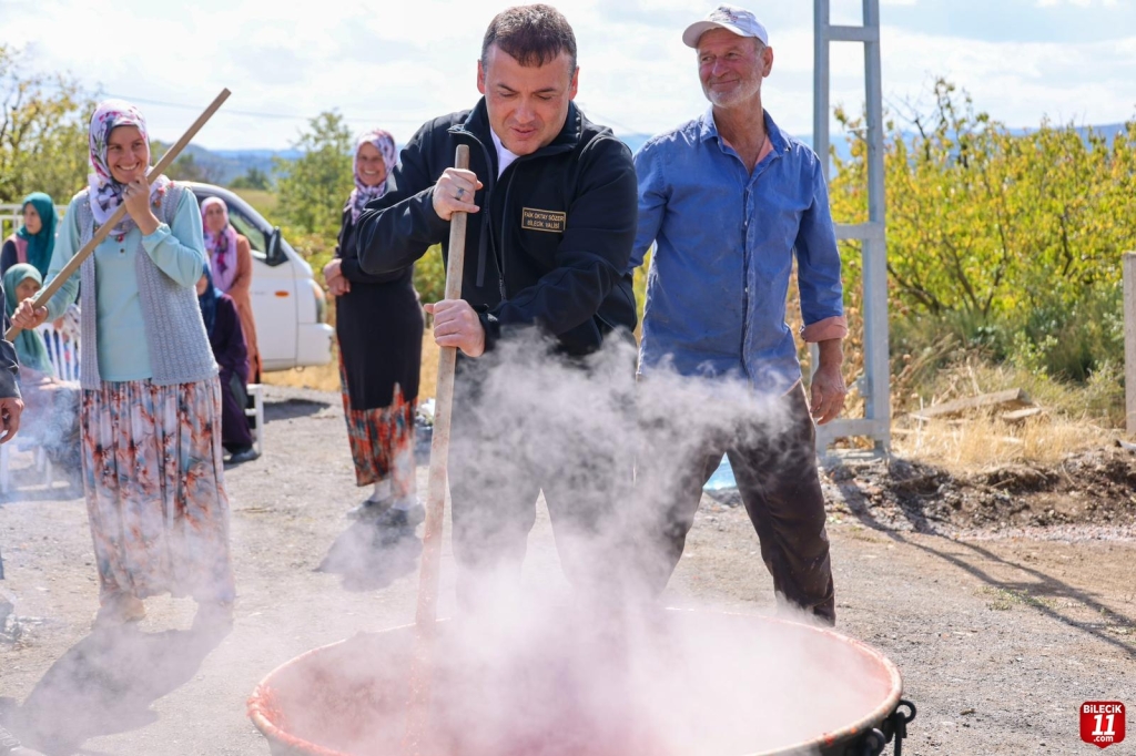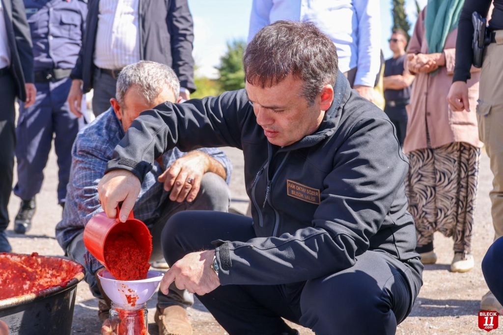 Hasat programının ardından köyde vatandaşlarla bir araya gelen Vali Sözer, geleneksel yöntemlerle salça yapan kadınların yanına giderek kazan başına geçti. Bilecik’te bir kültür haline gelen salça yapımının hem ekonomik hem de sosyal açıdan önemli bir üretim faaliyeti olduğunu belirten Sözer, vatandaşlarla sohbet ederek üretim sürecine eşlik etti.