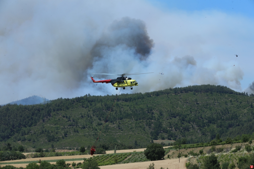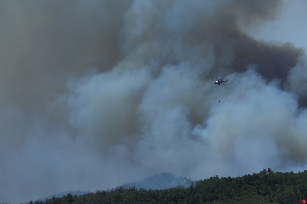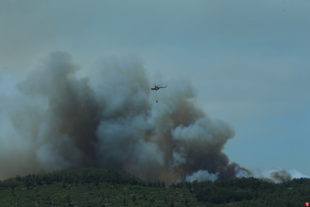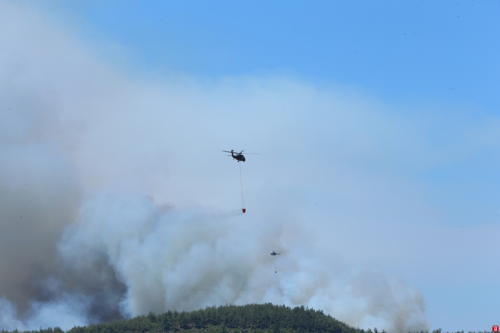 Yangını söndürmek için 1 İHA, 4 uçak, 10 helikopter, 64 arazöz, 124 araç ve 603 personel görev alıyor.