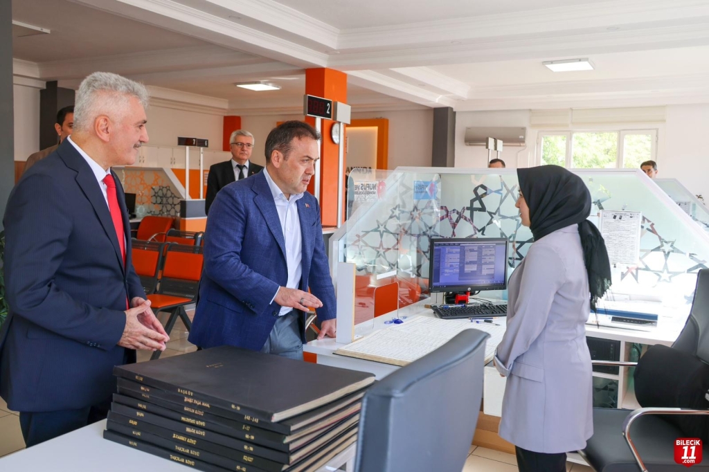 Bilecik Valisi Faik Oktay Sözer, Bilecik Defterdarlığı, İl Nüfus ve Vatandaşlık Müdürlüğü ile Tapu ve Kadastro Müdürlüklerini ziyaret ederek yürütülen çalışmalar hakkında bilgi aldı.