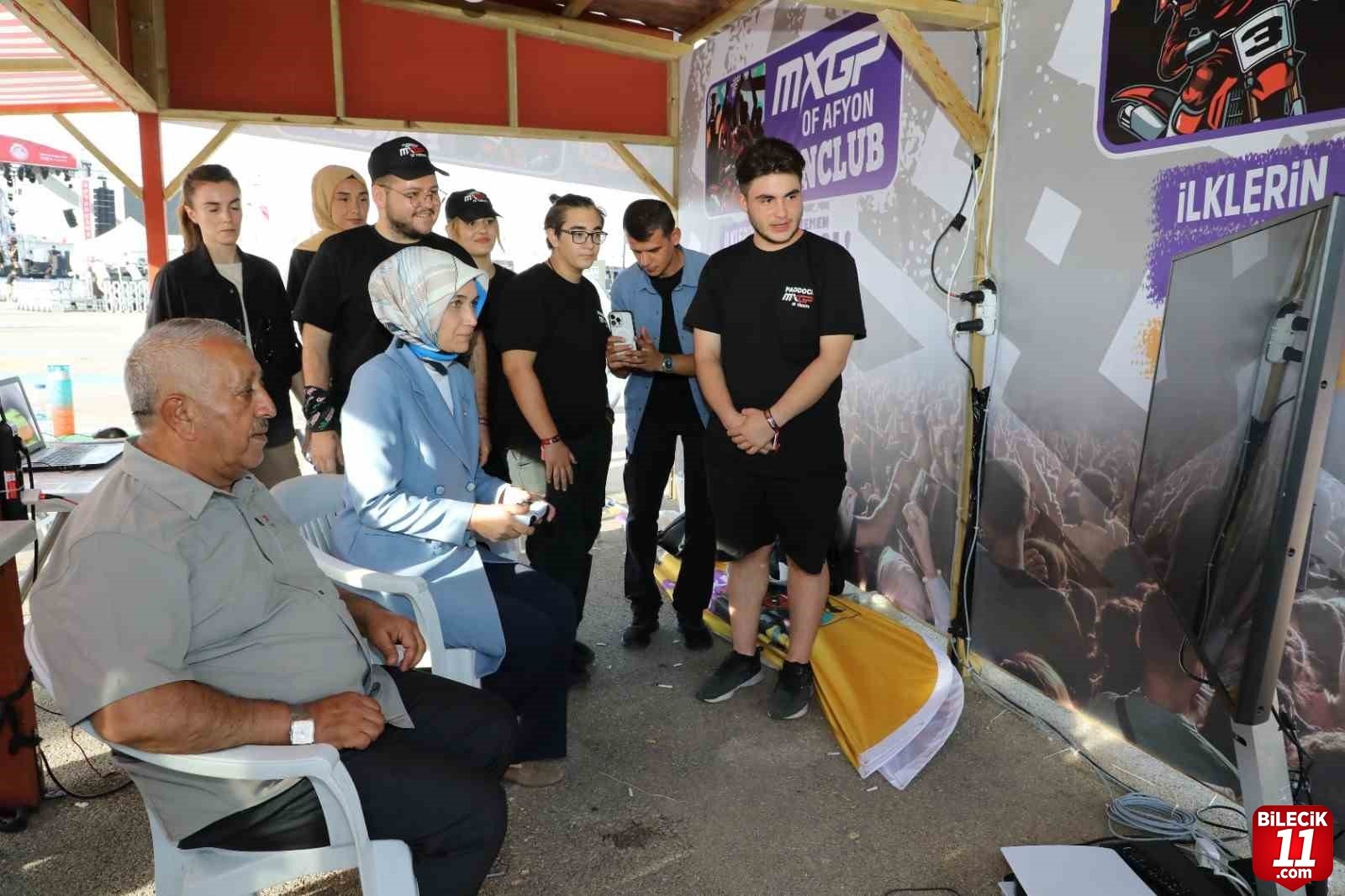 Gençlik ve Spor Bakanlığı, Afyonkarahisar Valiliği, Afyonkarahisar Belediyesi, Türkiye Motosiklet Federasyonu (TMF), Anadolu Motor ve Doğa Sporları Kulübü iş birliğiyle gerçekleştirilen Dünya Motosiklet Şampiyonası, Motofest ve Motokros etkinlikleri devam ediyor. Etkinlikler çerçevesinde Vali Yiğitbaşı ve Başkan Zeybek, gençler tarafından açılan MXGP Fan Kulüp standını ziyaret ederek gençlerle bir araya geldi. Protokol üyeleri sohbetin ardından geçlerin joysticklerini alarak MXGP Afyon oyununun başına geçti. Oyunda pek başarılı olmayan protokol üyelerinin yine de heyecanlı olmaları onları izleyenleri gülümsetti.