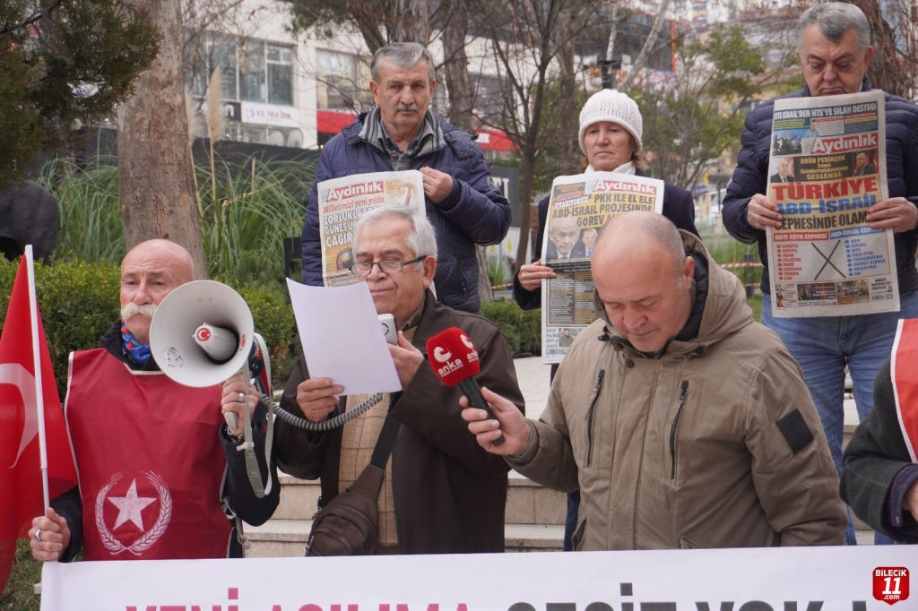 “Kıymetli Bilecikliler; son günlerde iç ve dış siyasette çok hızlı gelişmeler yaşıyoruz. Suriye Arap Cumhuriyeti’nin yıkılması, Beşar Esad yönetiminin devrilmesi, Heyet-i Tahrir Şam isimli terör örgütünün Şam’ı ele geçirmesi, Bunlarla paralel olarak ülkemizde ikinci açılım girişimlerinin başlanması sanki aynı merkezden düğmeye basılmış gibi bir süreç yaşıyoruz. Bu ikinci açılımın öncülüğünü de MHP genel başkanı Devlet Bahçeli yapıyor. Mecliste DEM’li milletvekillerinin elini sıkması, terörist başı Abdullah Öcalan’ın DEM parti grubunda silah bırakma konuşması yapması için çağrı yapması, defalarca sözümün arkasındayım demesi “Büyük Ortadoğu Projesi”nin yeniden gündeme getirildiğini göstermektedir. Ne yazıktır ki, birinci açılıma karşı çıkan, terörist başı için yağlı urgan atan Bahçeli gidiyor; yerine ikinci açılımı savunan bir Bahçeli geliyor. Hatırlayalım; 2013 yılında da bir açılım süreci yaşanmıştı. O zaman bu işin arkasında ABD ve FETÖ vardı. İktidardaki AKP hükümetine dayatılan bu birinci açılım sürecinde Habur sınır kapısındaki çadır mahkemeleri rezaleti, akil adamların ikna turları, Dolmabahçe Sarayı’ndaki HDP’lilerle yapılan görüşmeler ve verilen fotoğraflar bugünkü durumun göstermektedir. Bugün de bu planın arkasında ABD, İngiltere, İsrail aynı sürece sürüklendiğini vardır. AKP’nin yerine öne çıkan ise MHP lideri Devlet Bahçeli’dir. O zaman HDP vardı, bugün DEM partisi yani yine PKK vardır. Bakınız DEM partisine; sevinçten ne yapacaklarını şaşırıyorlar. On binlerce insanımızın katili terörist başını “Sayın Abdullah Öcalan” seviyesine çıkardılar. Kahraman Türk ordumuzun, polisimizin, korucularımızın, MİT’imizin canları pahasına mücadele yürüttüğü ülkemizde kıpırdayamaz hale getirdiği, Irak’ta, Suriye’de inlerini başına yıktığı koşullarda PKK terör örgütüne can suyu vermek anlamına gelen bu ikinci açılımı nasıl savunursunuz? Türkiye Cumhuriyeti’mizin üniter devlet yapısına kasteden, binlerce masumun, askerimizin, polisimizin ölmesine yol açan bu teröristleri nasıl muhatap alırısınız?