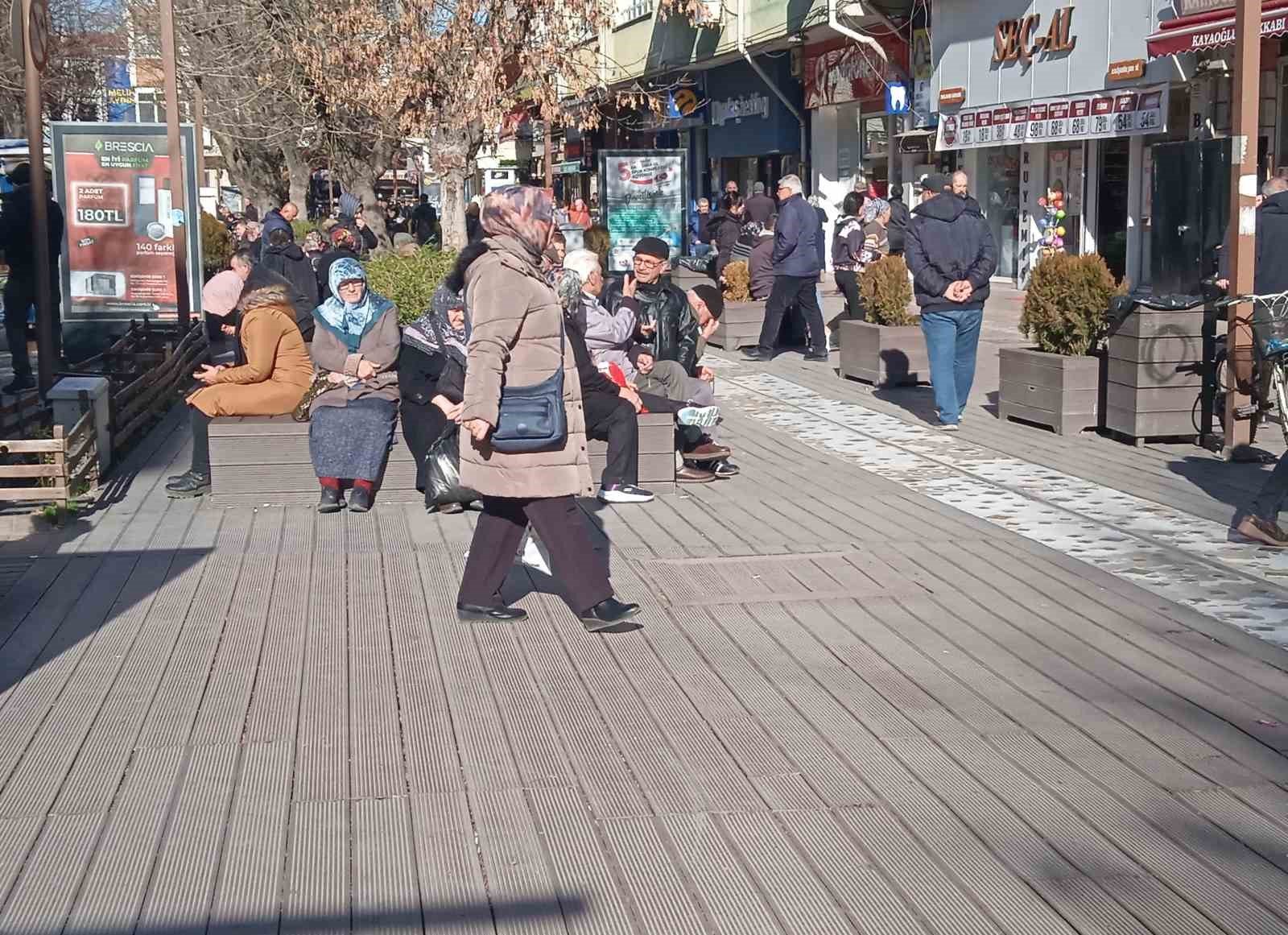Eskişehir’de kış ayları yaşanmasına rağmen hafta başından itibaren hava sıcaklığı özellikle öğle saatlerinde 13 dereceye kadar yükseldi. Soğuk günleri geride bırakan Eskişehir halkı güneşli havayı fırsat bilip kendilerini dışarı attı. Bu aylarda ‘kış güneşi’ olarak nitelendiren güneşli hava karşısında vatandaşların kentin işlek caddelerinden olan Hamamyolu Caddesi’nde vakit geçirdiği görüldü. Bazı vatandaşların güneş altında yürüyüş yaptığı, bazılarının ise çevredeki banklarda oturup zamanını değerlendirdiği göze çarptı. Öte yandan bazı vatandaşlar yılın son günlerinde güneşli havanın olmasından dolayı memnun olduğunu ifade etti.