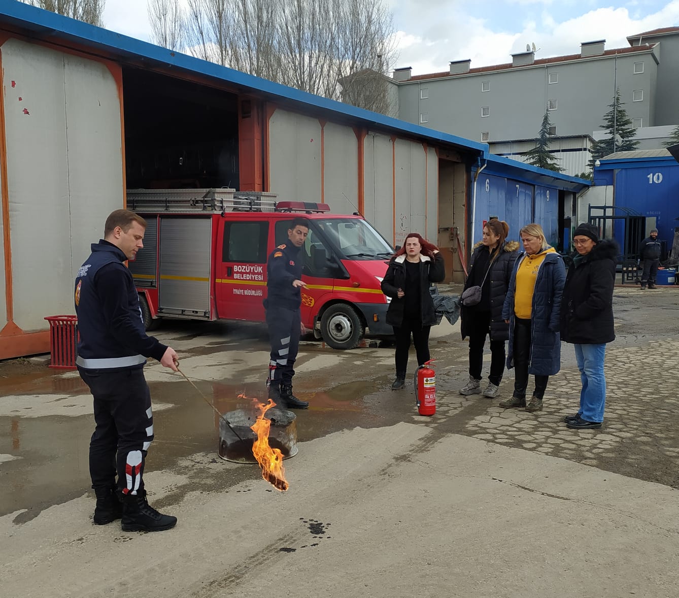 Bozüyük Belediyesi İtfaiye Müdürlüğü’nde görevli personeller tarafından Kılavuz Raylı Sistem Nostaljik Tramvay Projesi kapsamında görev yapacak olan tramvay sürücüleri kadın vatmanlara uygulamalı yangın eğitimi verildi.