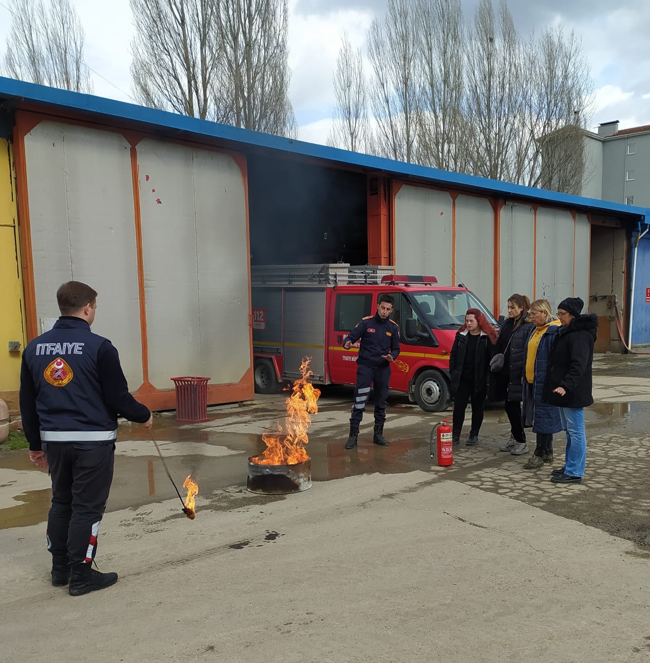 İtfaiye Müdürlüğü’nün bahçesinde yapılan eğitim çalışmasında vatmanlara yangına karşı alınacak önlemler, yangın çeşitleri ve olası yangın durumunda neler yapılması gerektiği gibi bilgilerin yanı sıra yangın tüpü ve nasıl kullanılması gerektiği anlatılarak kullanımı uygulamalı olarak gösterildi. Yangın eğitiminin sonunda vatmanlar yangın tüpünü bizzat kendileri kullanarak pratik yaptılar.