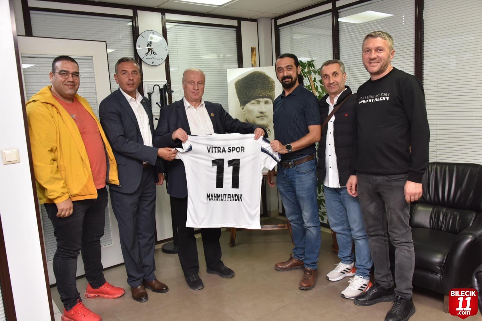 “Bozüyük Vitraspor Kulübü Başkanı Tuna Portakal, Eczacıbaşı Vitra İnsan Kaynakları Yöneticisi Burhan Yüzer ve sendika yöneticisi Hasan Adsoy’a nazik ziyaretleri nedeni ile teşekkür ediyorum. İlçemizi başarıyla temsil eden Vitraspor Futbol Takımımıza ligde başarılar diliyorum.” dedi.