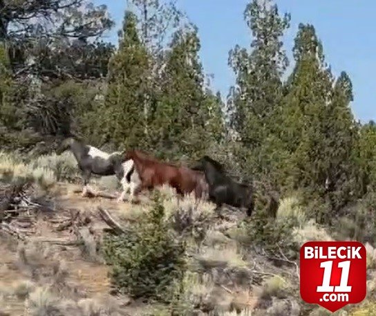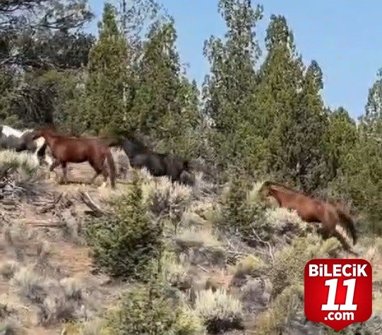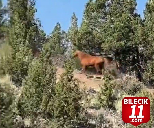Kütahya’nın Tavşanlı ilçesi Yaylacık ormanında yaşayan yılkı atları, doğa yürüyüşü için yola çıkan kişi tarafından görüntülendi.