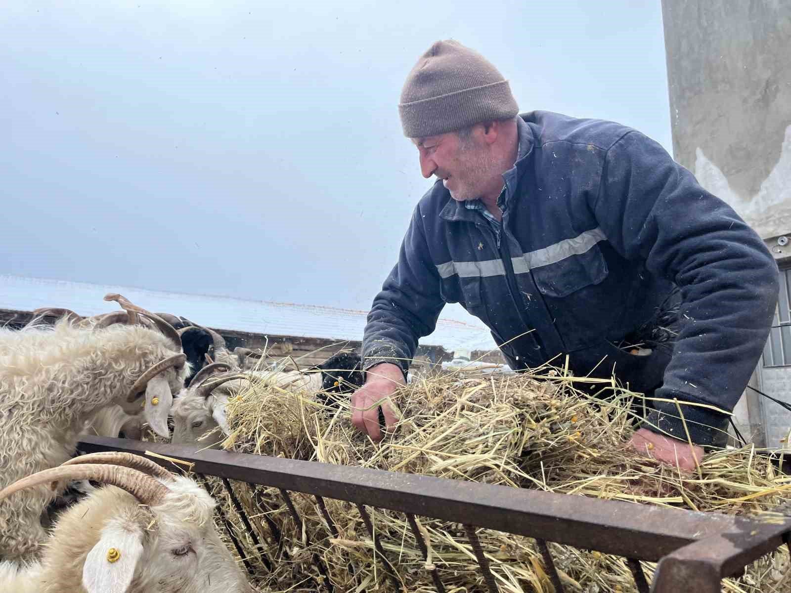 Sofça Mahallesi’nde 100 adet keçi ve koyunu olan küçükbaş besicisi Ahmet Yiğit, hayvanlarını yazın dağlarda yaydığın fakat yağan karla birlikte beslemeye çalıştığını belirtti. Yiğit konuyla alakalı, “Yaklaşık 100 keçi ve koyun var. Koyun ve keçileri bölüm bölüm yemlemeye çalışıyorum. Ayazda ve karda bayağı bir emek sarf etmek gerekiyor. Az önce de gördüğünüz gibi yemleri getirip götürmek zorlayıcı oluyor. Hayvanları kış sebebiyle devamlı içerde bakmak haliyle bizi daha çok zorluyor. Ellerim cebimde şuan, ellerimi cebime sokuyorum ayrıca eldiven giyiyorum ama fayda etmiyor, illaki ellerim üşüyor. Yeri geliyor hayvanları doyurmak, yemlemek için sabah saat 6-7 gibi kalkıyoruz. Onlar önemli. Hayvanları karda yürütmüyoruz, hava rüzgârlı olmadığında keçileri dışarı salıyorum. Ben bu hayvanlara 3 öğün yemek veriyorum, günde yaklaşık 7 balya yem veriyorum. Evlatlarım gibi bakıyorum, hem gelirimiz için hem de sevdiğimiz için bu hayvancılığı yapıyoruz. Onlar doyduğu zaman baktıkça ferah duyuyorum” dedi.