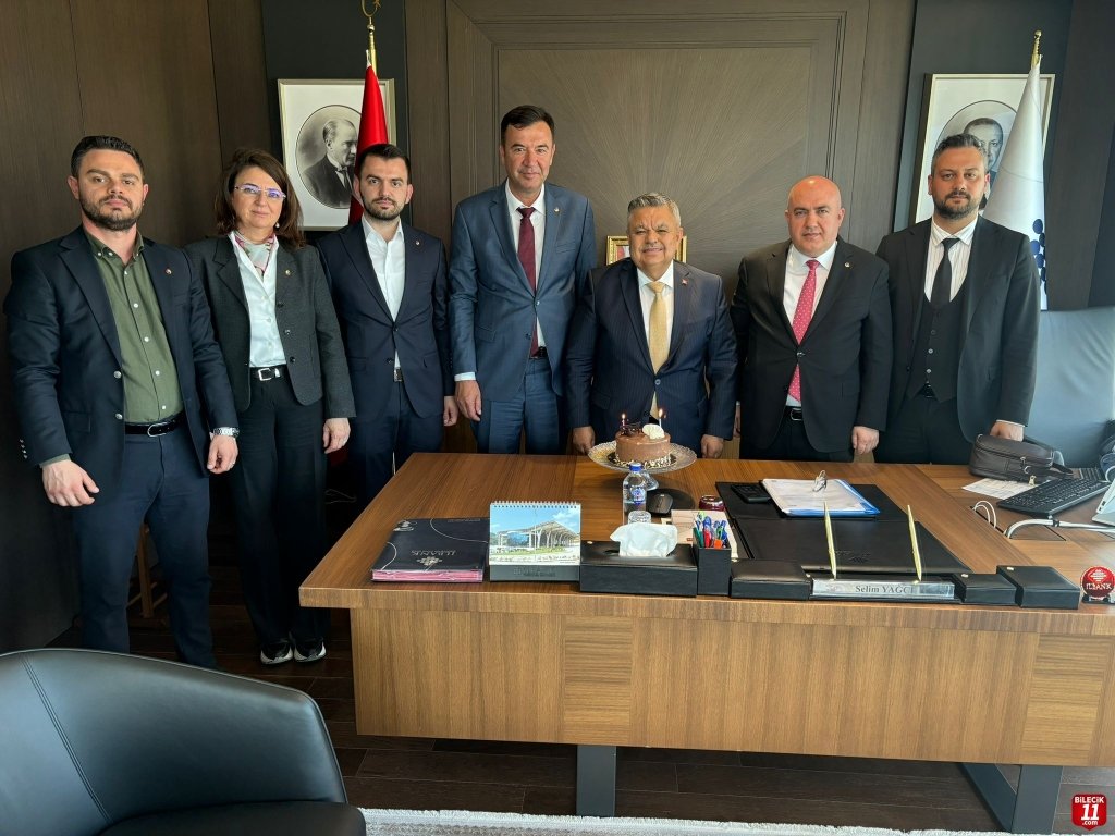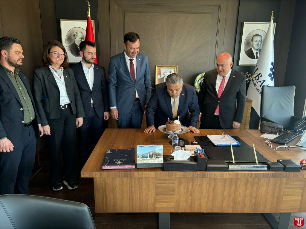 Bilecik Ticaret ve Sanayi Odası (TSO) Yönetim Kurulu Başkanı Mehmet Ergün, beraberindeki heyet ile birlikte İLBANK Yönetim Kurulu Başkan Vekili Selim Yağcı’ya doğum günü sürprizi yaptı.