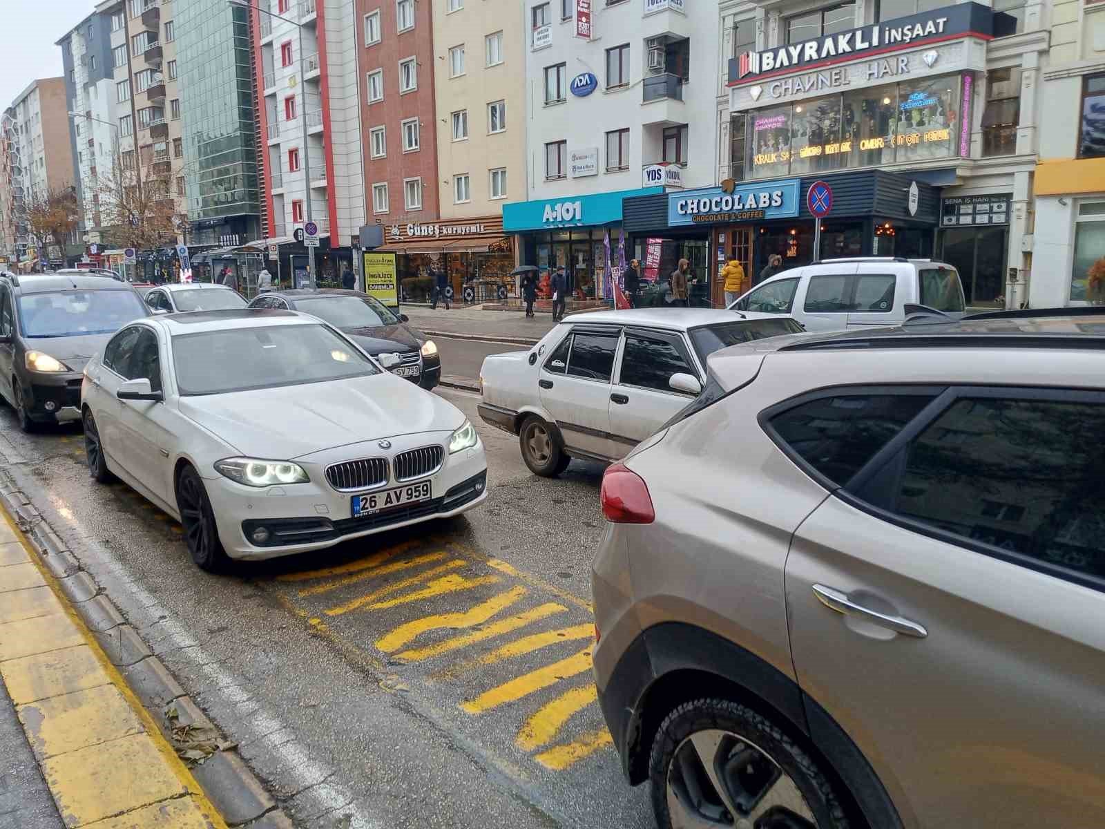 Eskişehir’de kısa süreli etkili olan yağmur sonrası kent merkezinde araç kuyrukları oluştu.