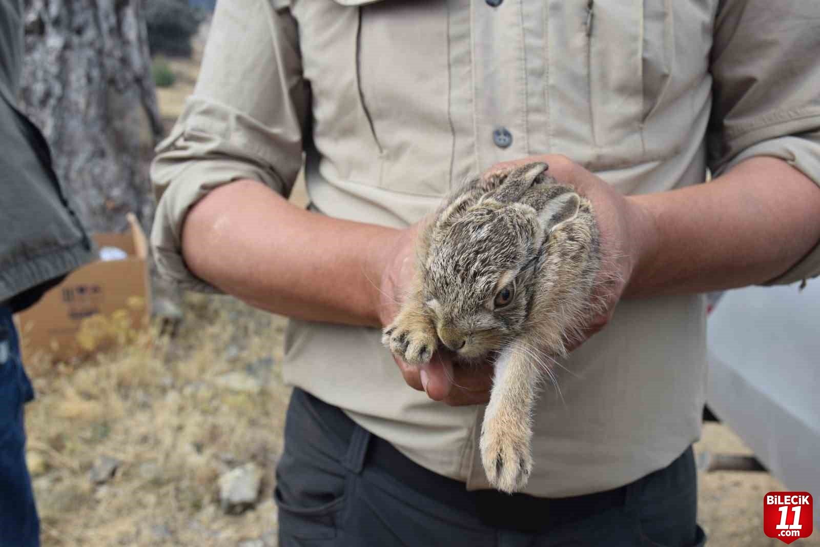 Eskişehir’in Alpu İlçesi’nde yangın çıkan alandaki bir çukurda bulunan 2 yavru yaban tavşanı, korumaya alındıktan sonra yaşam alanlarına uygun bir yerde tekrar doğaya bırakıldı.