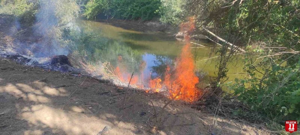 Bilecik’in Osmaneli ilçesinde Göksu Nehri kenarında başlayan yangın kısa sürede söndürüldü.