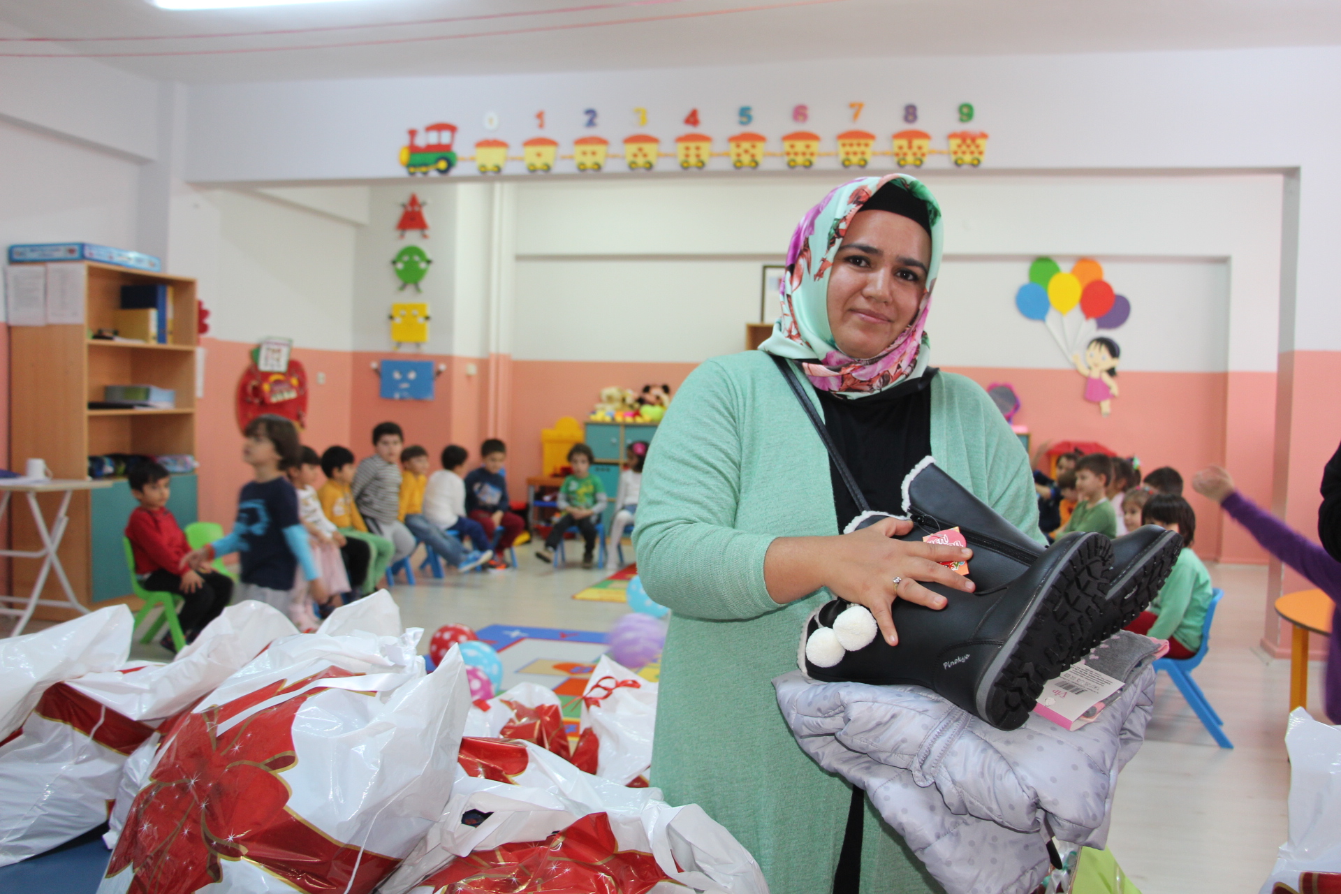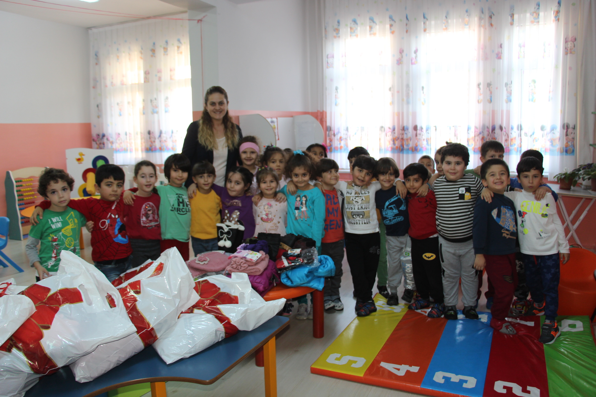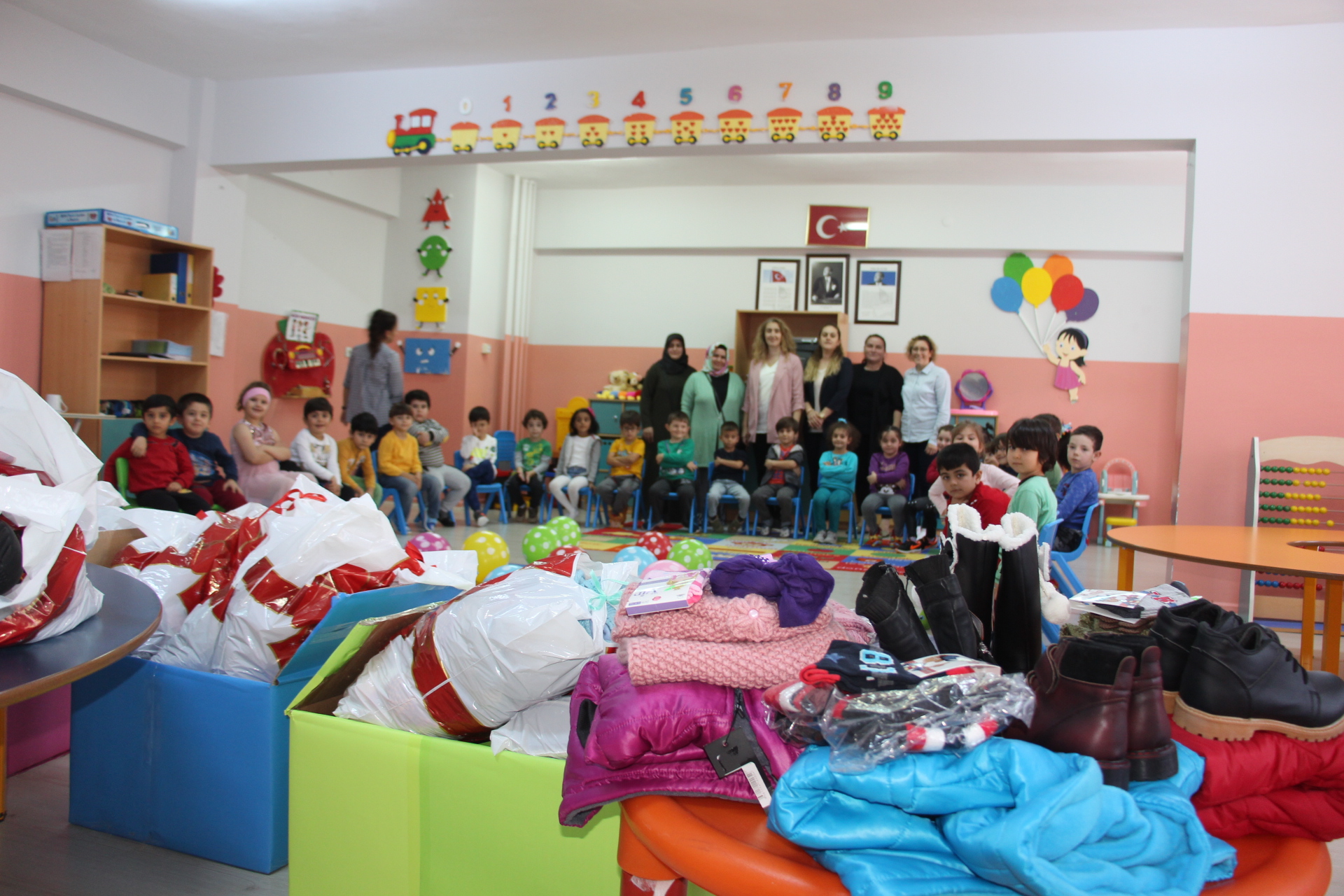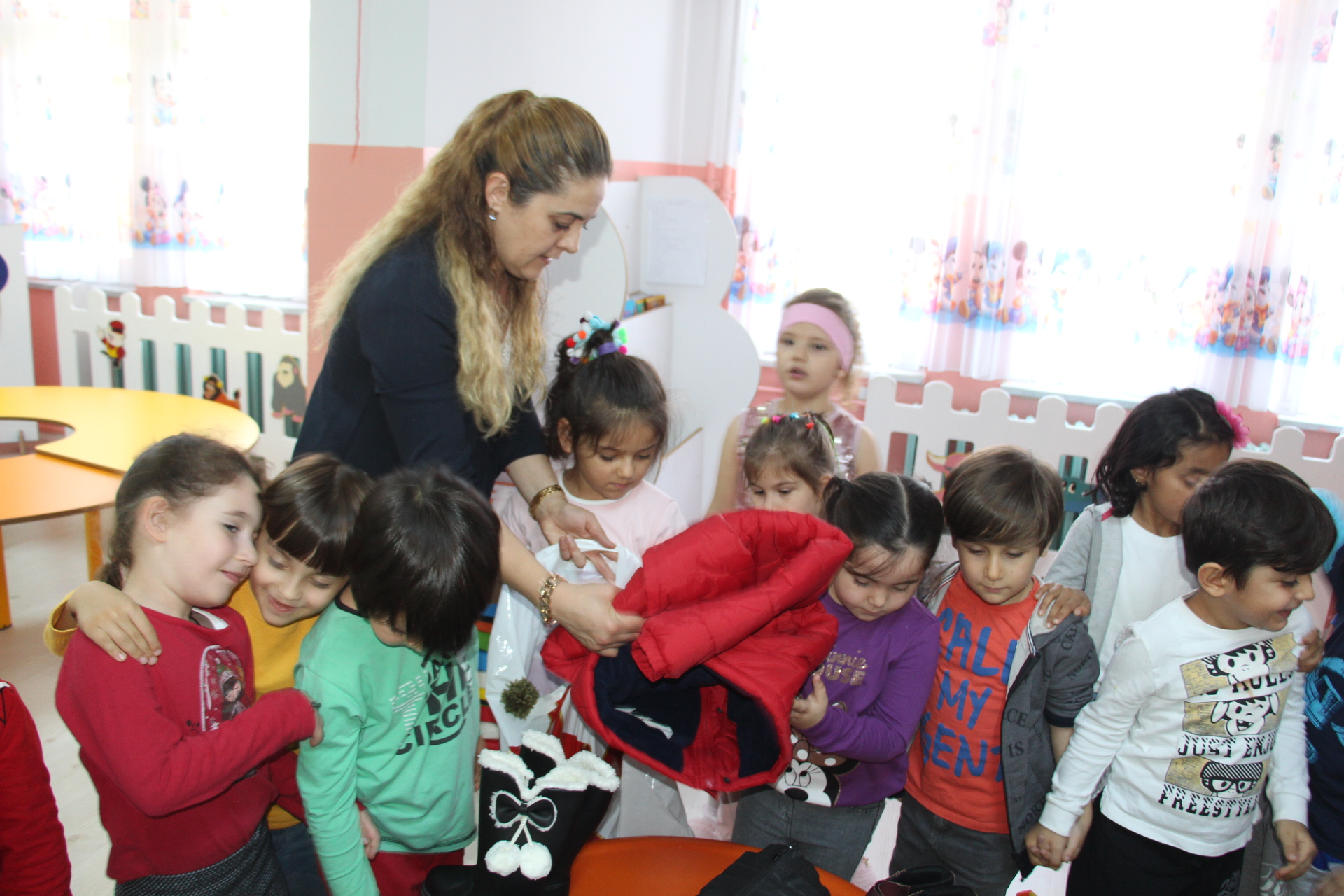 Kışın soğuk havalarda arkadaşlarının üşümemesi için velileriyle birlikte atkı, bere ören mont ve bot temin eden minik öğrenciler bunları başka okullardaki ihtiyaç sahibi öğrencilere hediye etti.