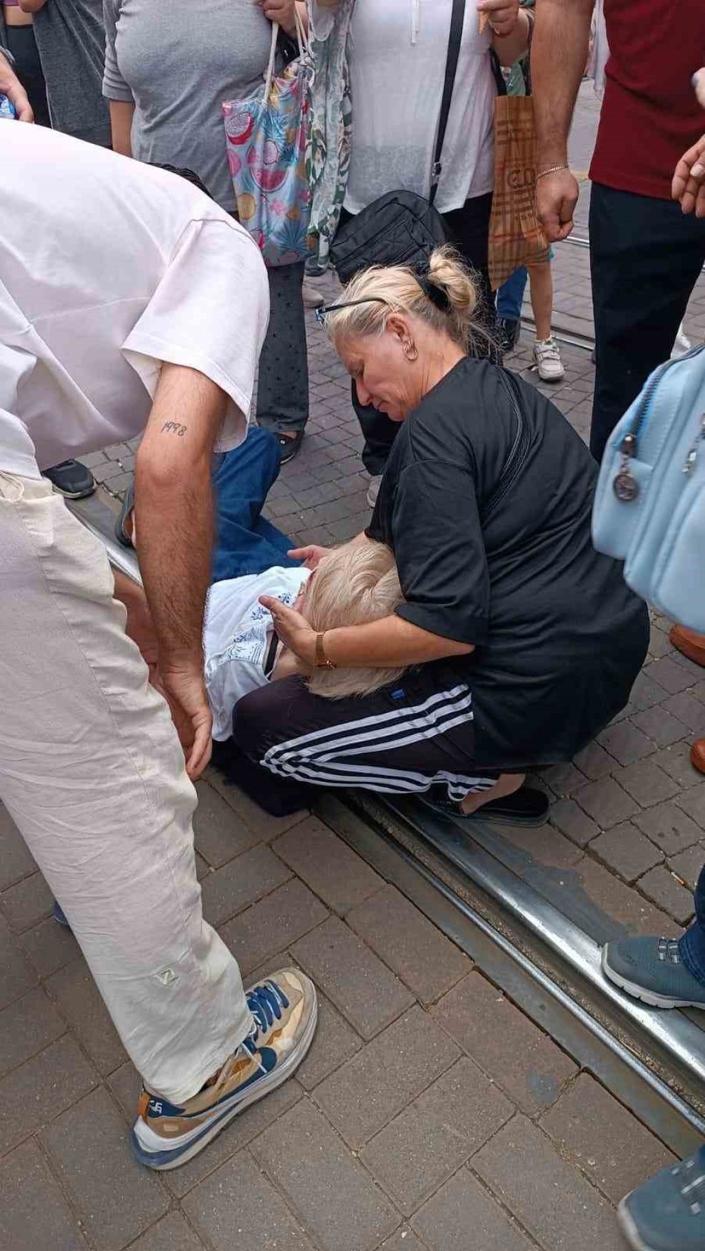 Çevredekilerin ilk müdahalesini yaptığı kadın, olay yerine gelen 112 Acil Servis ekiplerince hastaneye kaldırıldı. – İHA