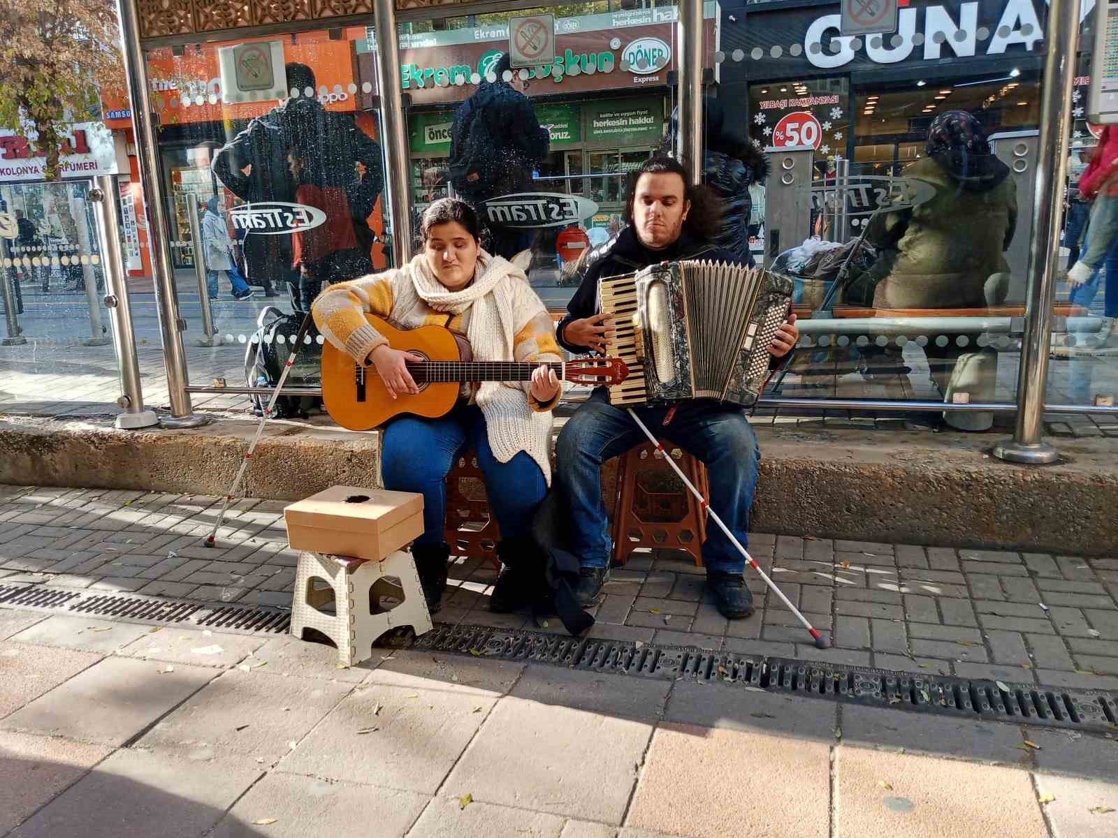 Eskişehir’deki sokak müzisyenleri soğuk hava şartlarına rağmen günün her saati vatandaşları sanatla buluşturuyor.