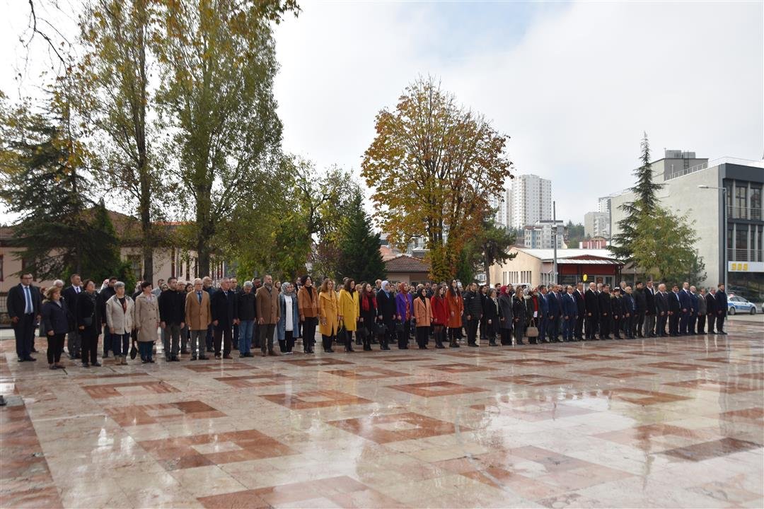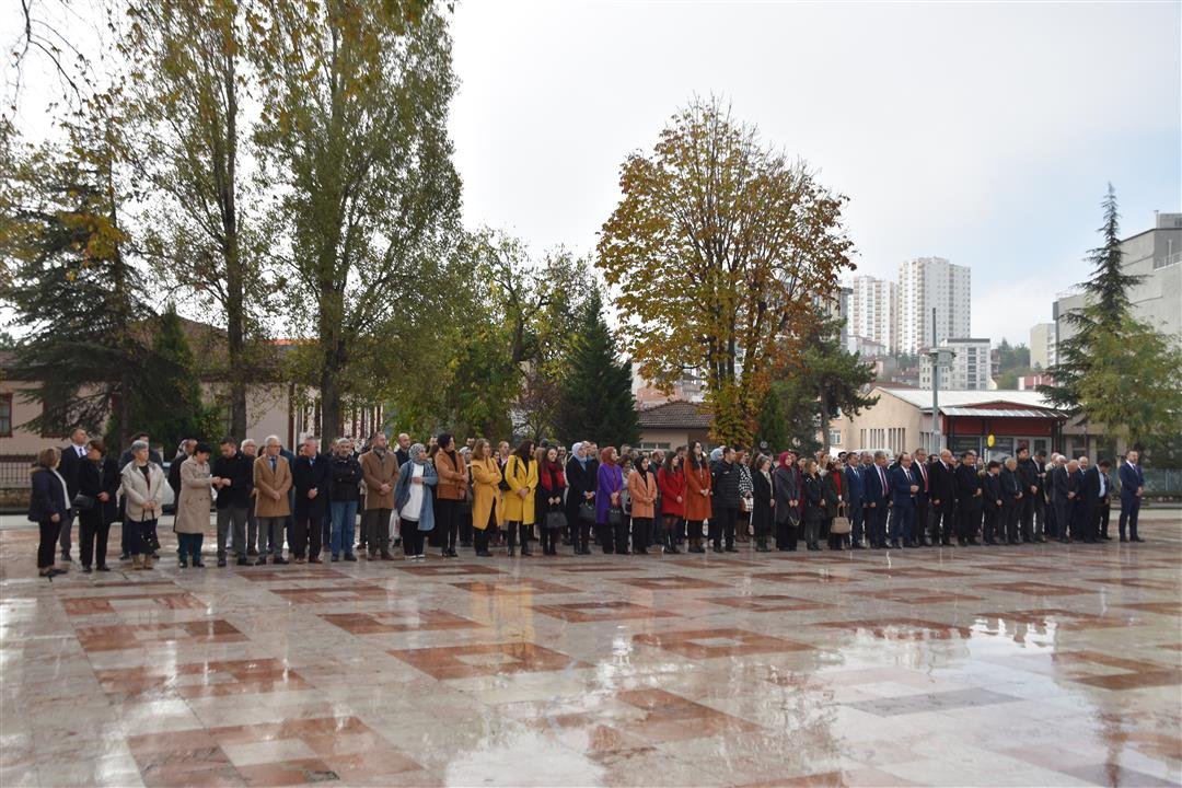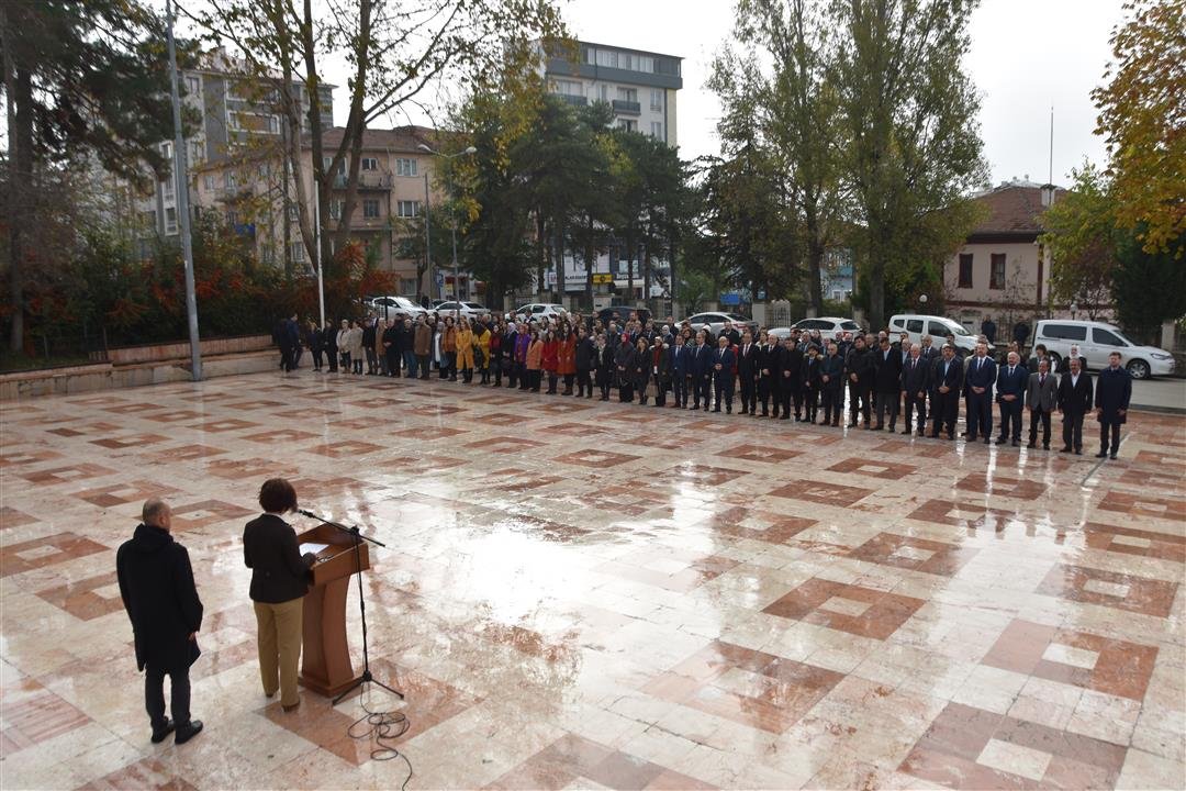 Cumhuriyet Meydanında Milli Eğitim Müdürvekili Tahsin Yazır tarafından Atatürk anıtına çelenk sunulması ile başlayan tören, saygı duruşu ve İstiklal Marşı’nın okunması ile devam etti.
