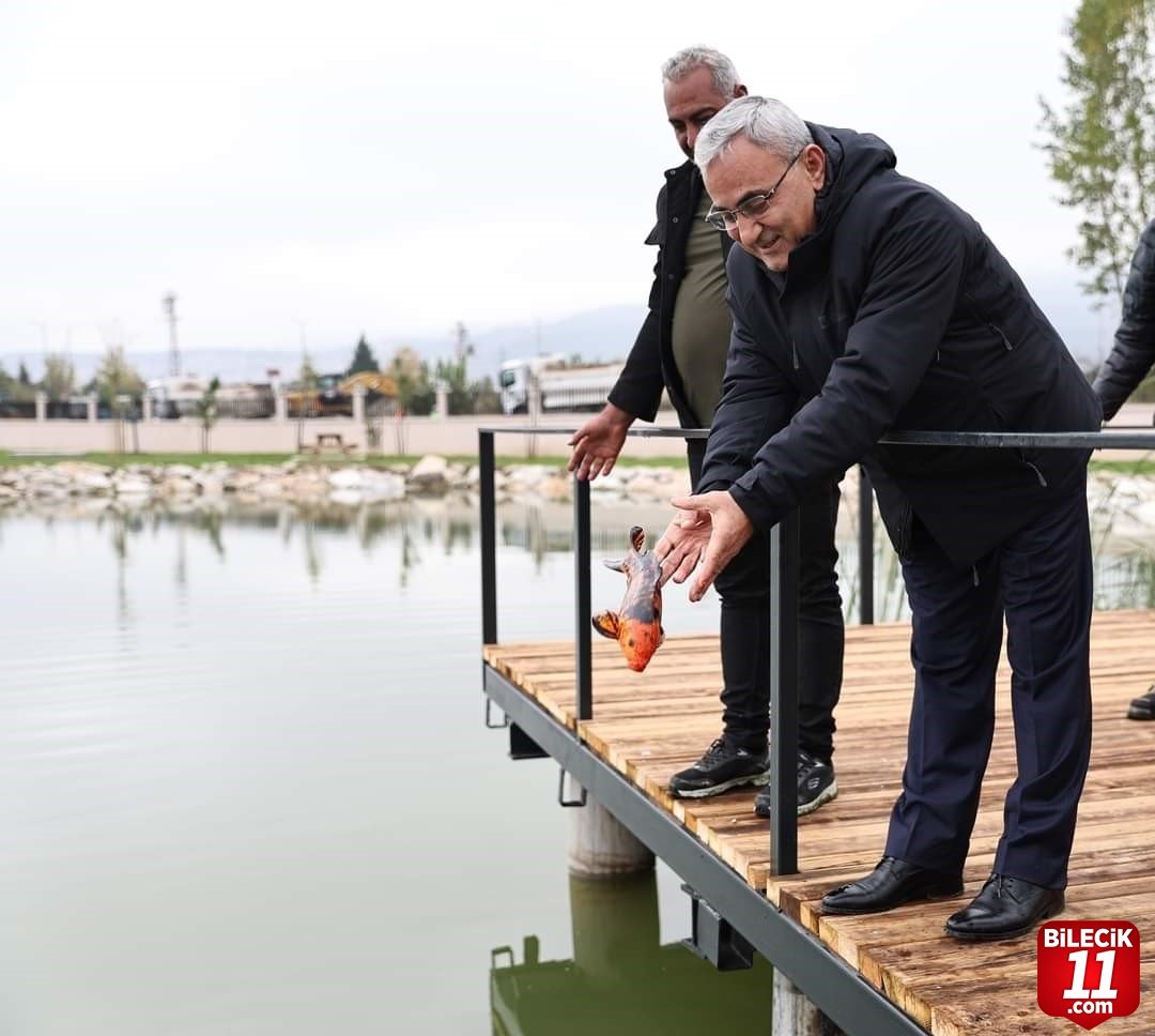 Balıkların Yedigöller 100. Yıl Kültür Parkı’ndaki biyolojik larva mücadelesine katkı sağlayacağını belirten Belediye Başkanı Prof. Dr. Alim Işık, balıkların göletin doğal habitatına da uyum sağlayacağını ifade etti. – İHA