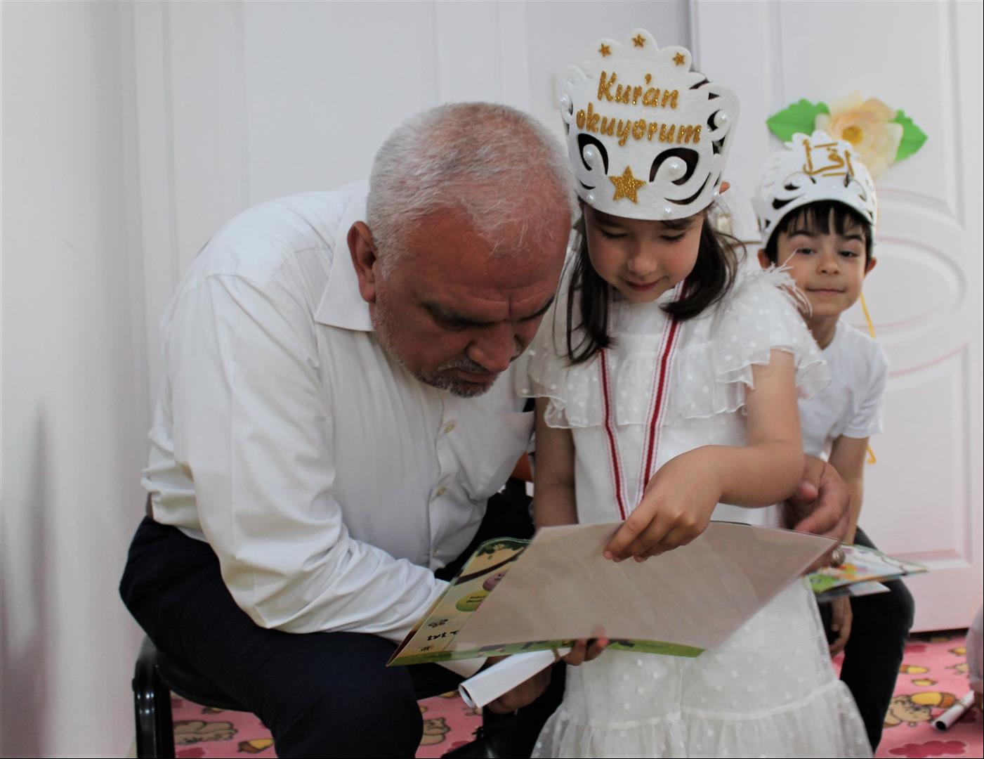 Miniklerin Kur’an-ı Kerim ve ilahiler okunduğu programda, Müftü Ali Erhun’a İl Müftü Yardımcısı Aysel Hacömeroğlu da eşlik etti.