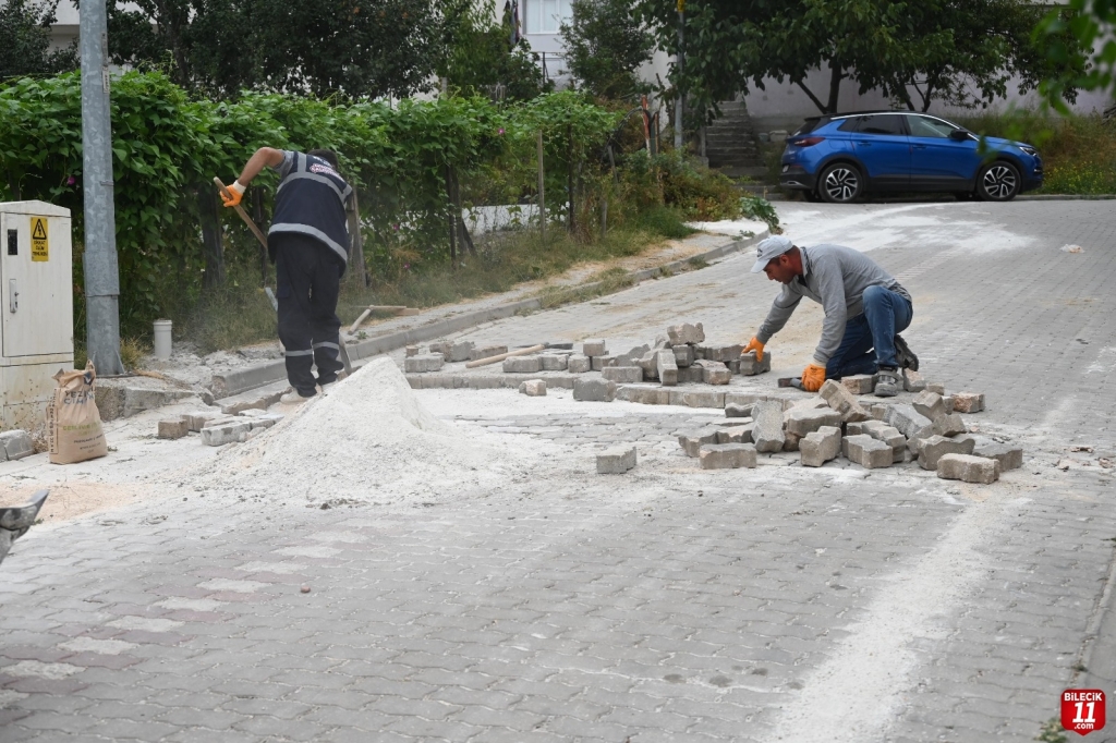 Belediye Fen İşleri Müdürlüğü ekipleri tarafından ilçe genelinde yürütülen yol bakım ve düzenleme çalışmaları Yediler Mahallesi 704 ve 541 Sokak’ta yapılan kilit parke taşı onarım çalışmaları ile devam ediyor.