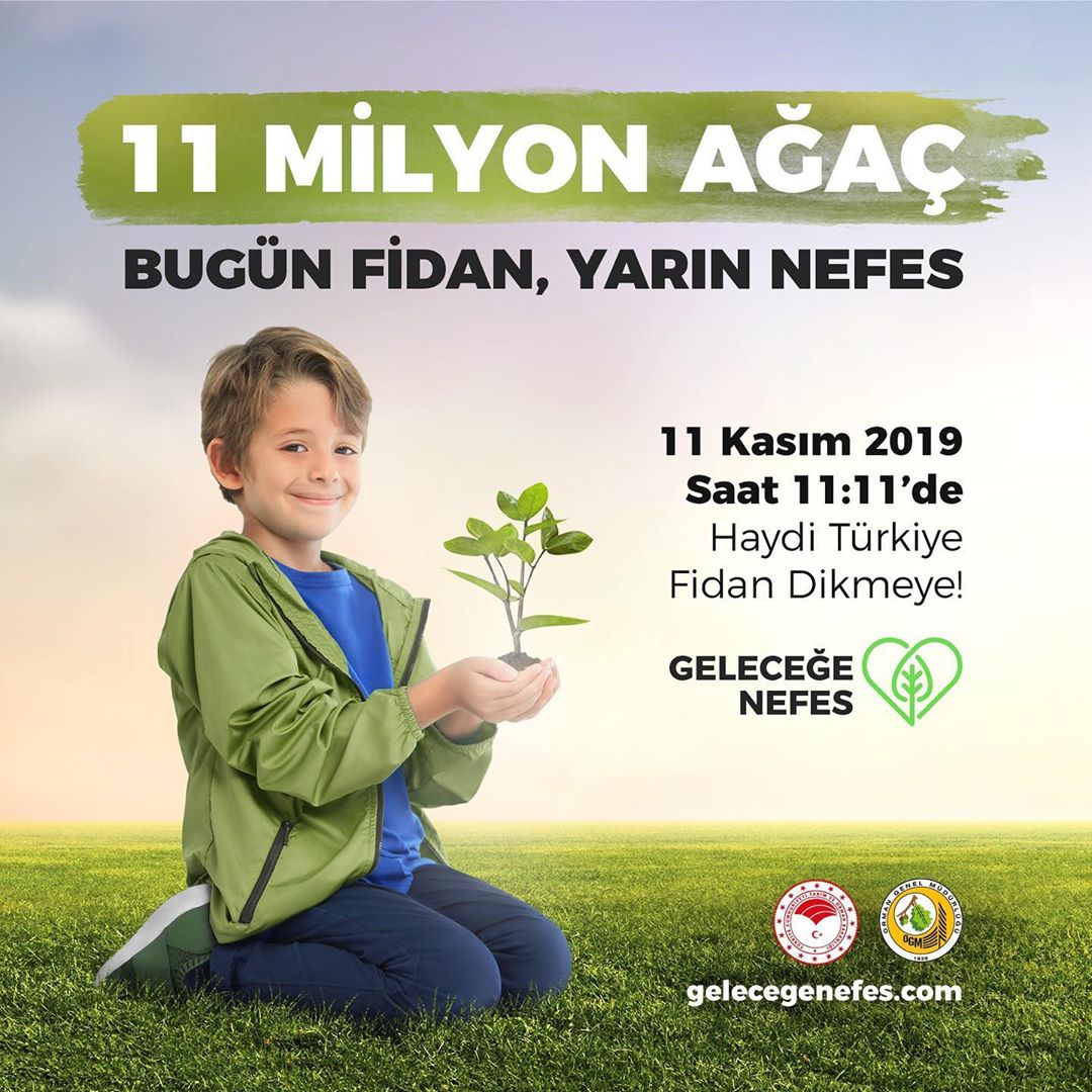 Tarım ve Orman Bakanlığı’nın başlattığı Geleceğe Nefes kampanyası ile 11 Kasım 2019’da saat 11:11’de 81 ilde 2023 noktada 3 saat içinde tam 11 milyon fidan toprakla buluşacak.