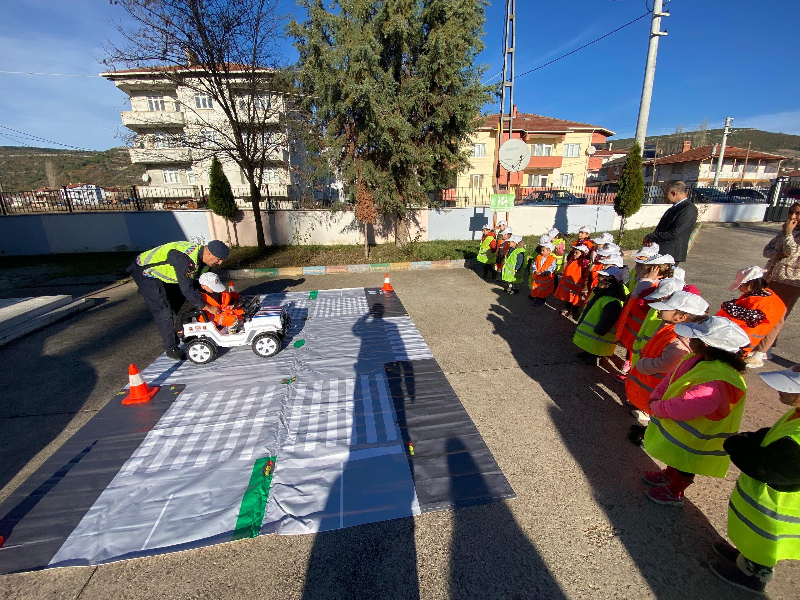 Faaliyette ayrıca öğrencilere Trafik Jandarması logolu şapka ve yelek dağıtıldı.