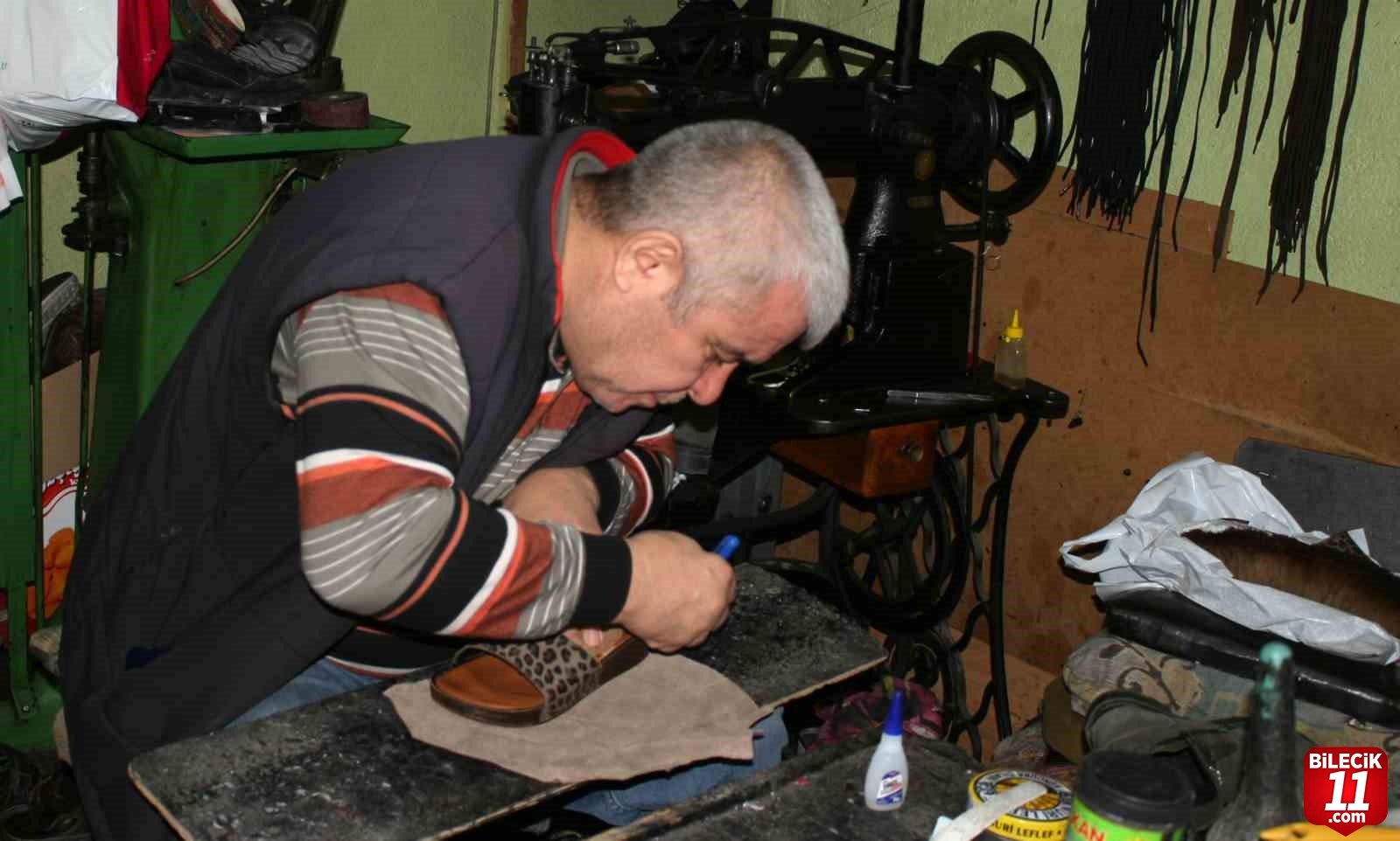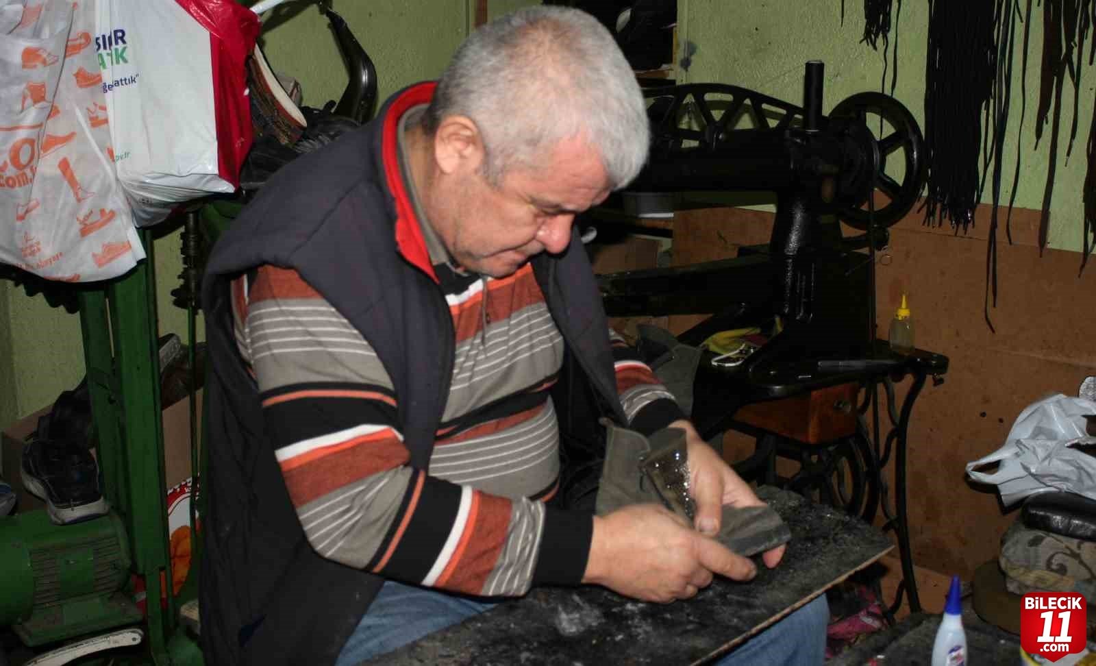 Bilecik’in Bozüyük ilçesinde ayakkabı tamirciliği yapan 58 yaşındaki İbrahim Ün, babasından öğrendiği mesleği günümüzde sürdürmeye devam ediyor.
