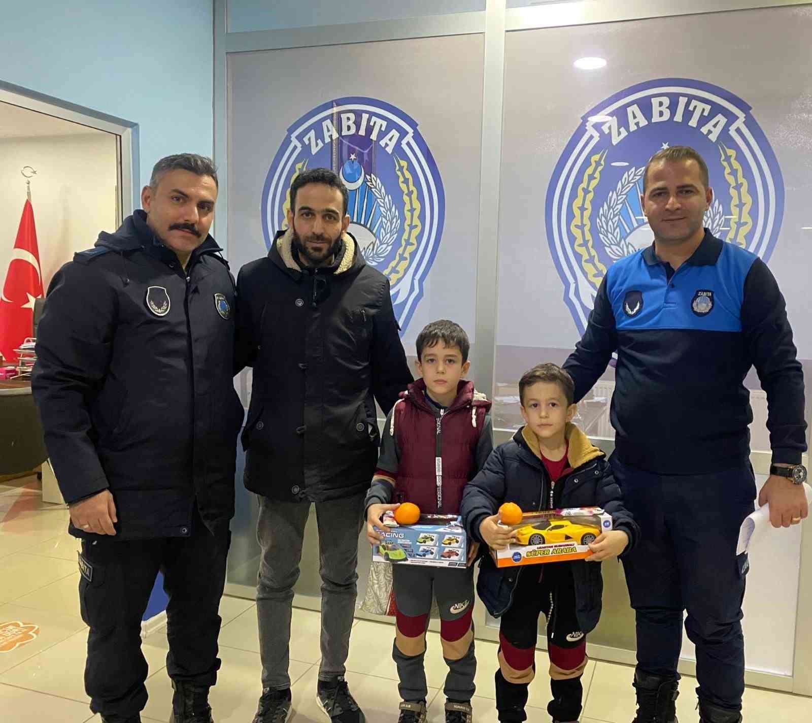 Zabıta Müdürü Mücahit Öndersev ise çocuklara oyuncak araba hediye ederek, yaptıkları güzel davranış dolayısıyla teşekkür etti.
