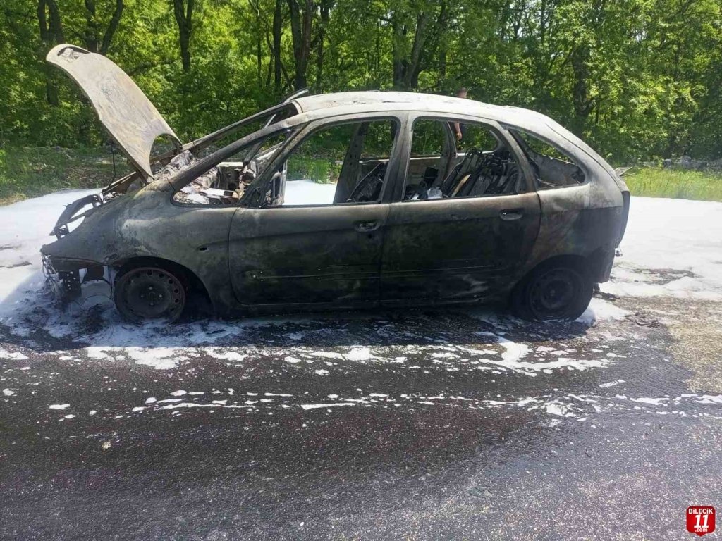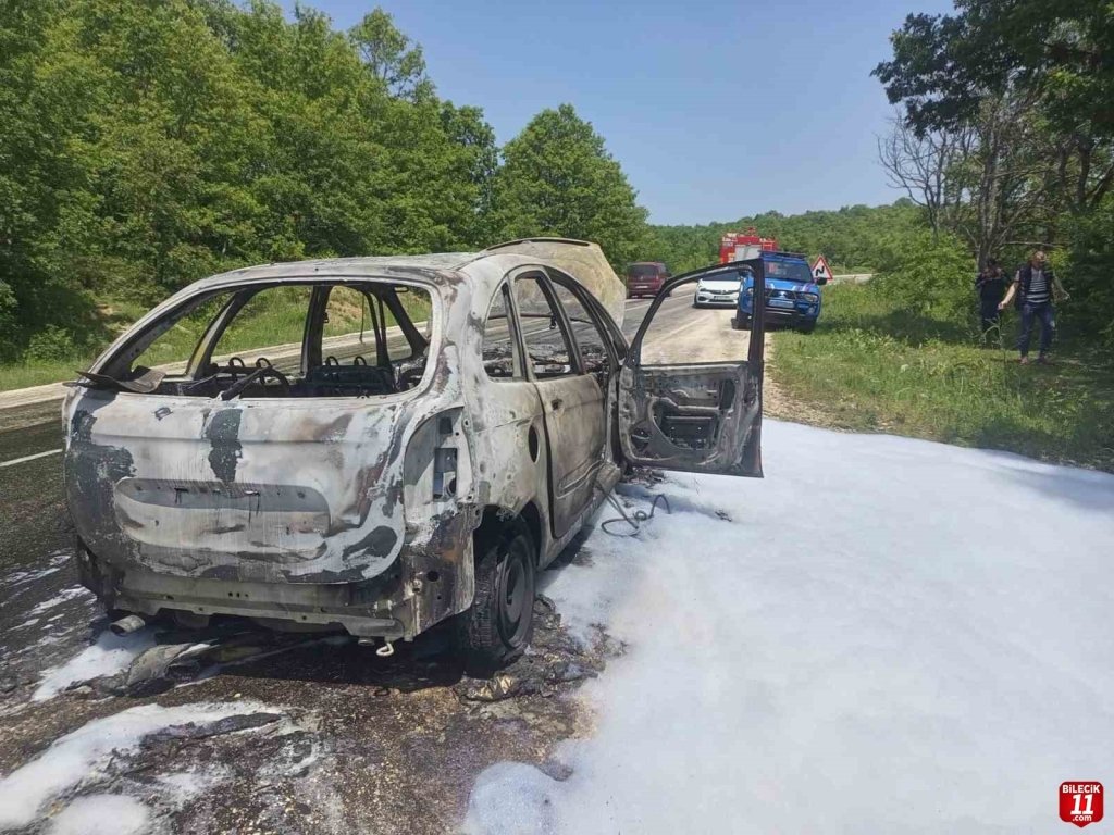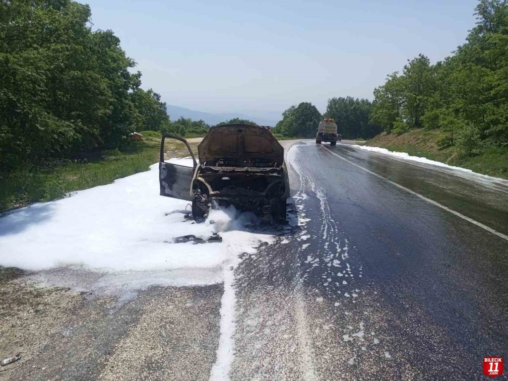 Bilecik’in Pazaryeri ilçesinde seyir halindeki otomobilin yanması sonucu araç kullanılmaz hale geldi.