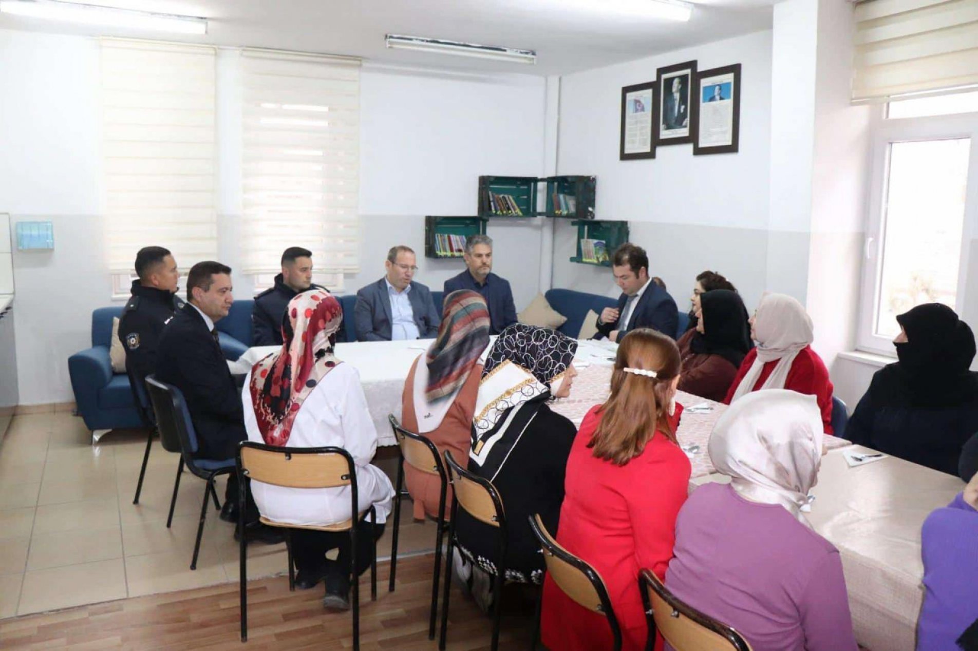 İlçe Kaymakamı Mustafa Nevzat Mercan, Belediye Başkanı Hayri Suer ve İlçe Milli Eğitim Müdürü Turgut Akagündüz ile birlikte, İlçe Halk Eğitim Merkezinde Giyim Üretim Tekonolojileri Kursunda eğitimi alan kadın kursiyerleri ziyaret ettiler.