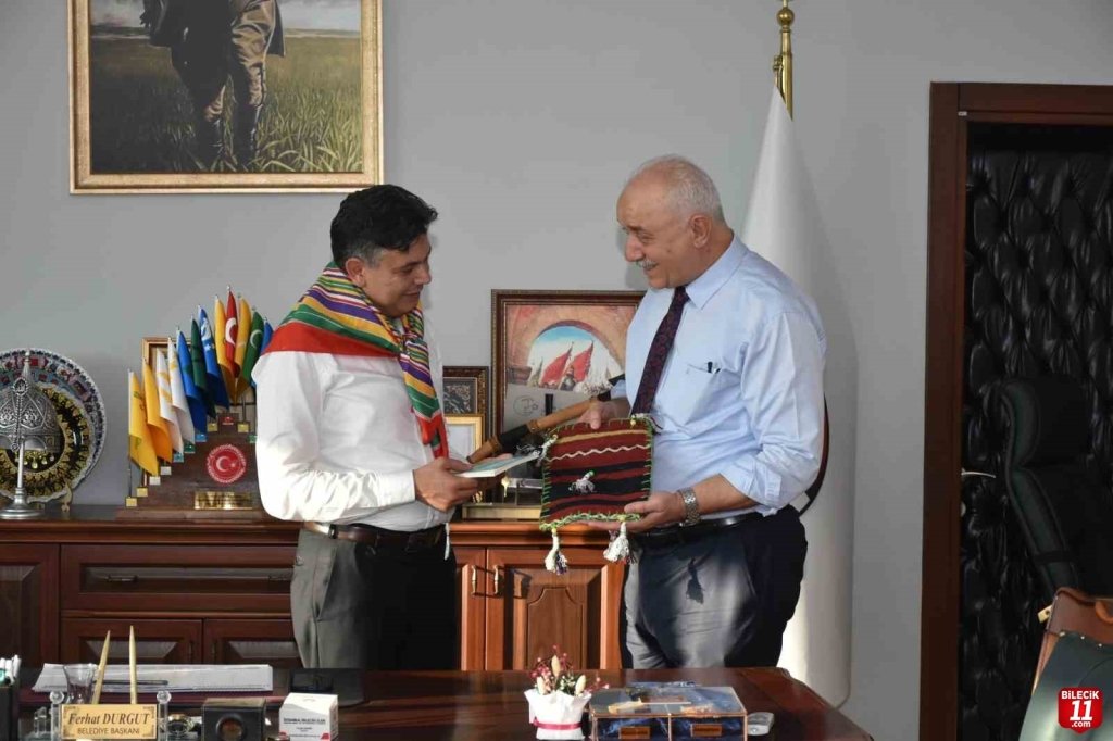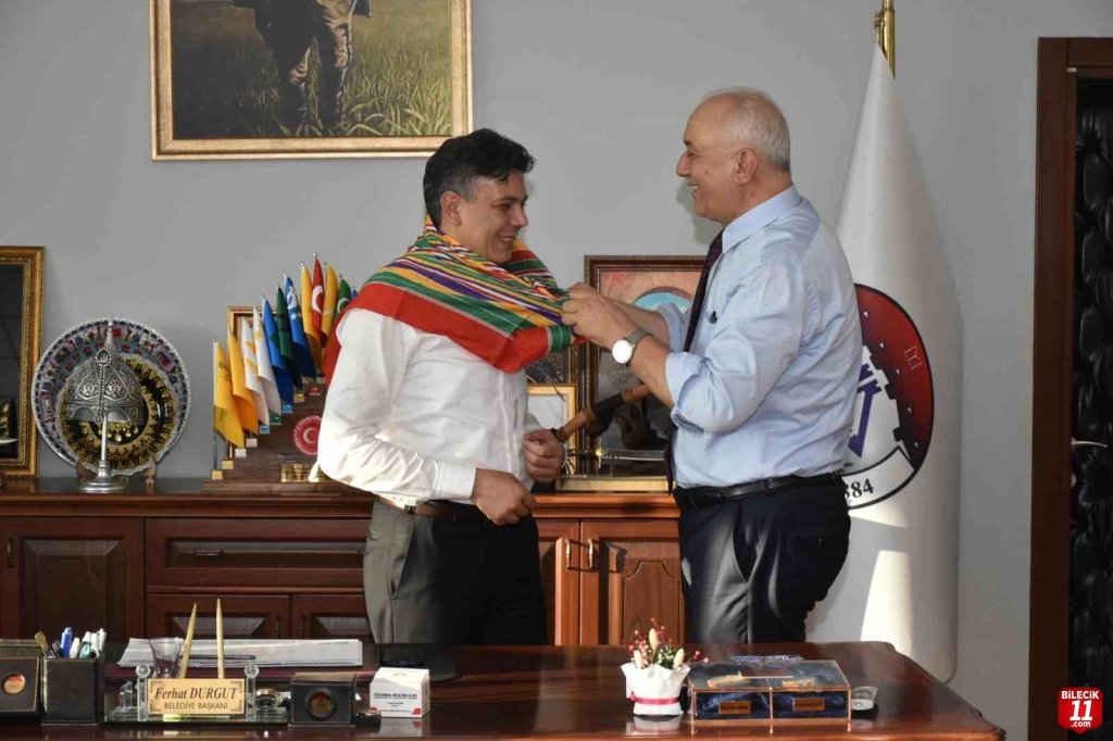 Başkan Durgut, hediyeler karşısında teşekkürlerini ederek bu anlamlı ziyaret için mutlu olduğunu dile getirdi. – İHA