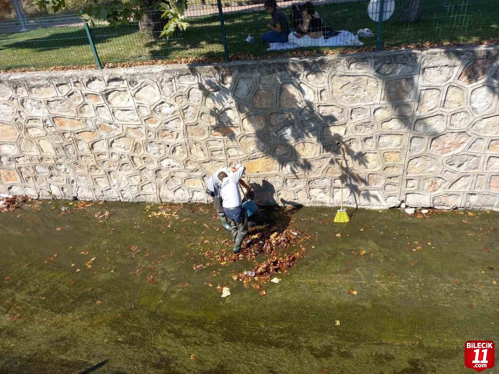 Bozüyük Belediyesi, yüksek ısı sonucu yosun yoğunlaşması olan kanallarda temizlik çalışması yaptı.