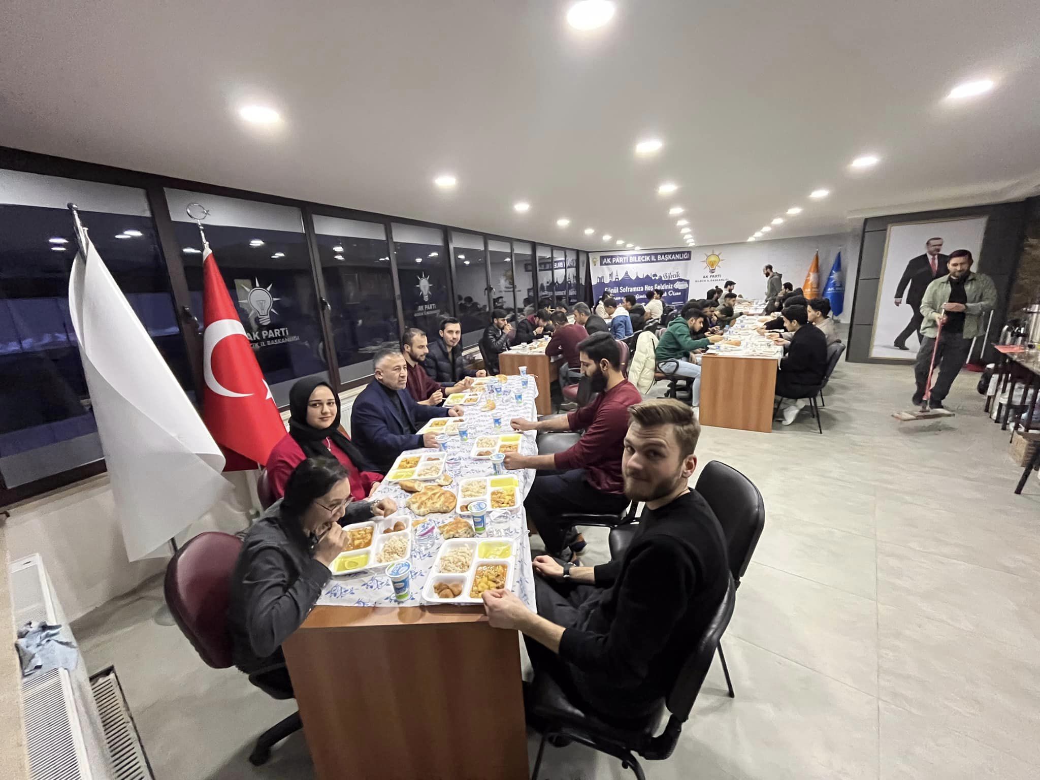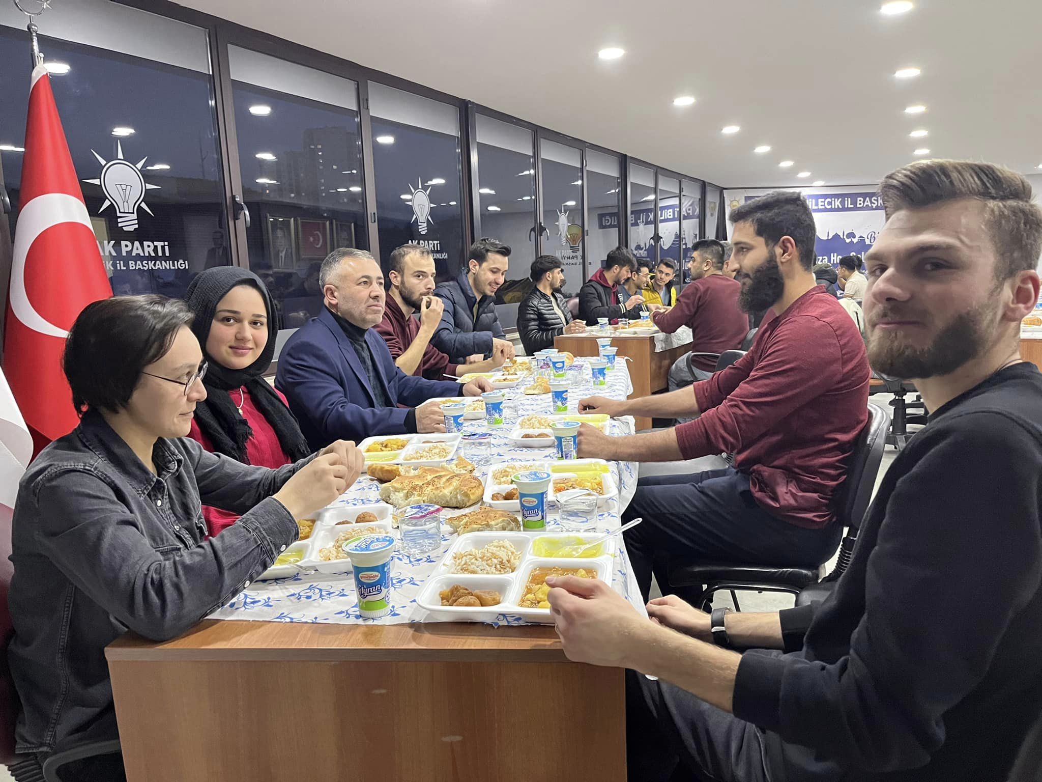 İl Başkanlığında düzenlenen yemeğe çok sayıda genç katıldı. İl Başkanı Serkan Yıldırım, yaptığı paylaşımda, ”Bugün gönül soframızı yabancı ülkelerden, ilimizde üniversite okumaya gelen öğrencilere açtık. Ramazan ayının samimi ikliminde onlara aile evi huzurunu yaşatabildiysek ne mutlu bize. Soframızı şereflendiren gençlerimize teşekkür ediyorum.” dedi.